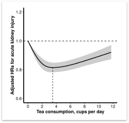 图:茶摄入与新发急性肾损伤的量效关系(来源:[1])