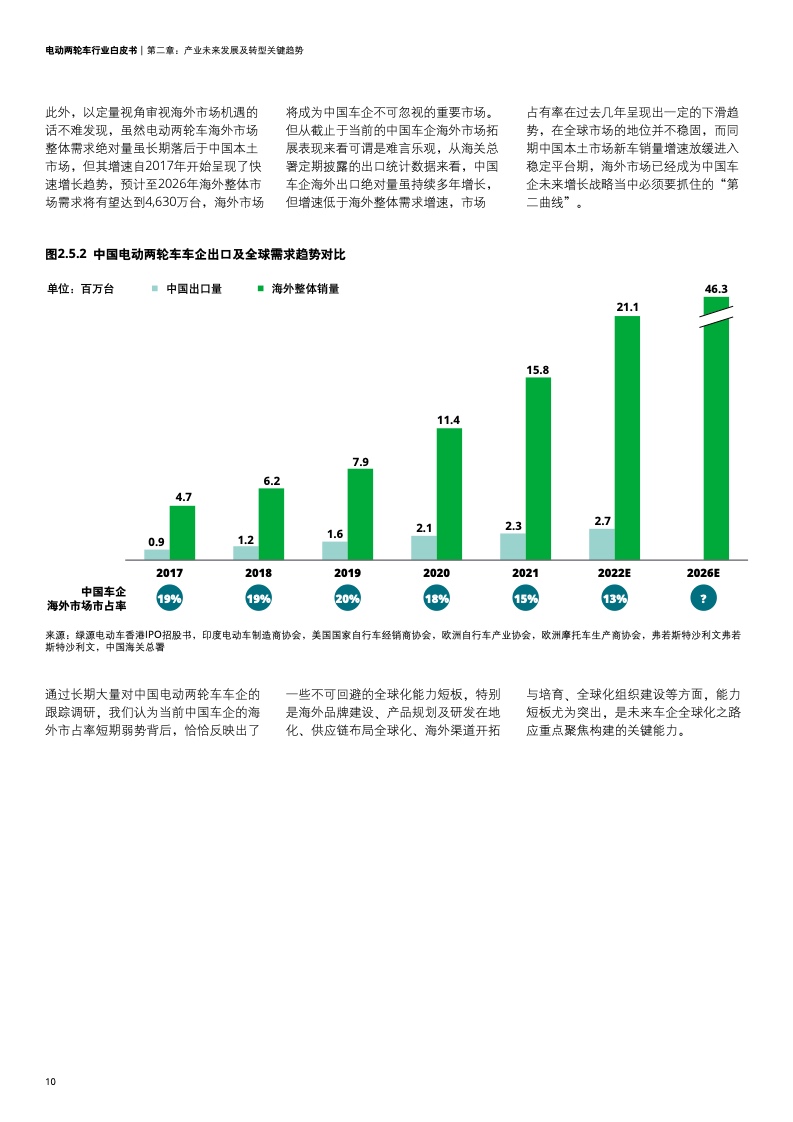 除以上提到的适用于国内外总体产业发展趋势的关键能力外,我们看到近几年中国电动两轮车出海是未来绕不开的必然选择,但这几年中资两轮车品牌在海外市场的市占率表现确实不如国内的表现这般光鲜,亟待找到快速突围的路径。