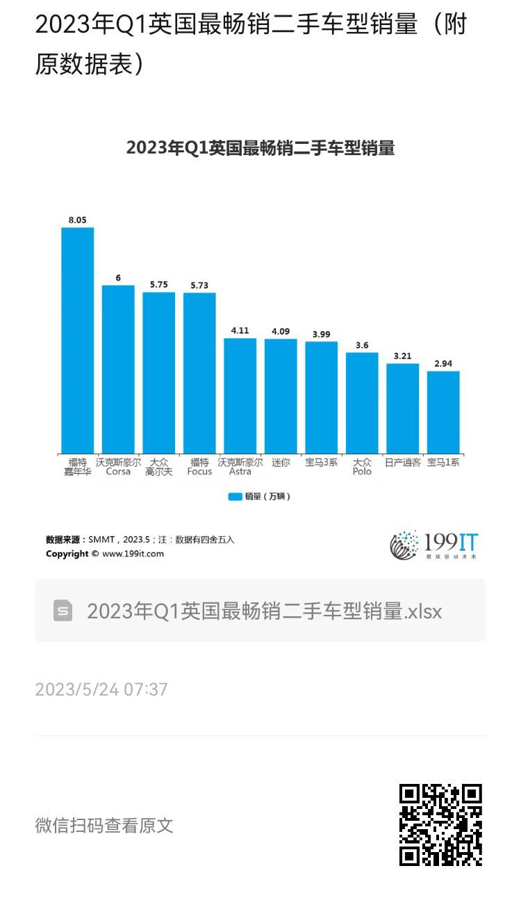 - 2023年Q1英国最畅销二手车型销量(附原数据表)