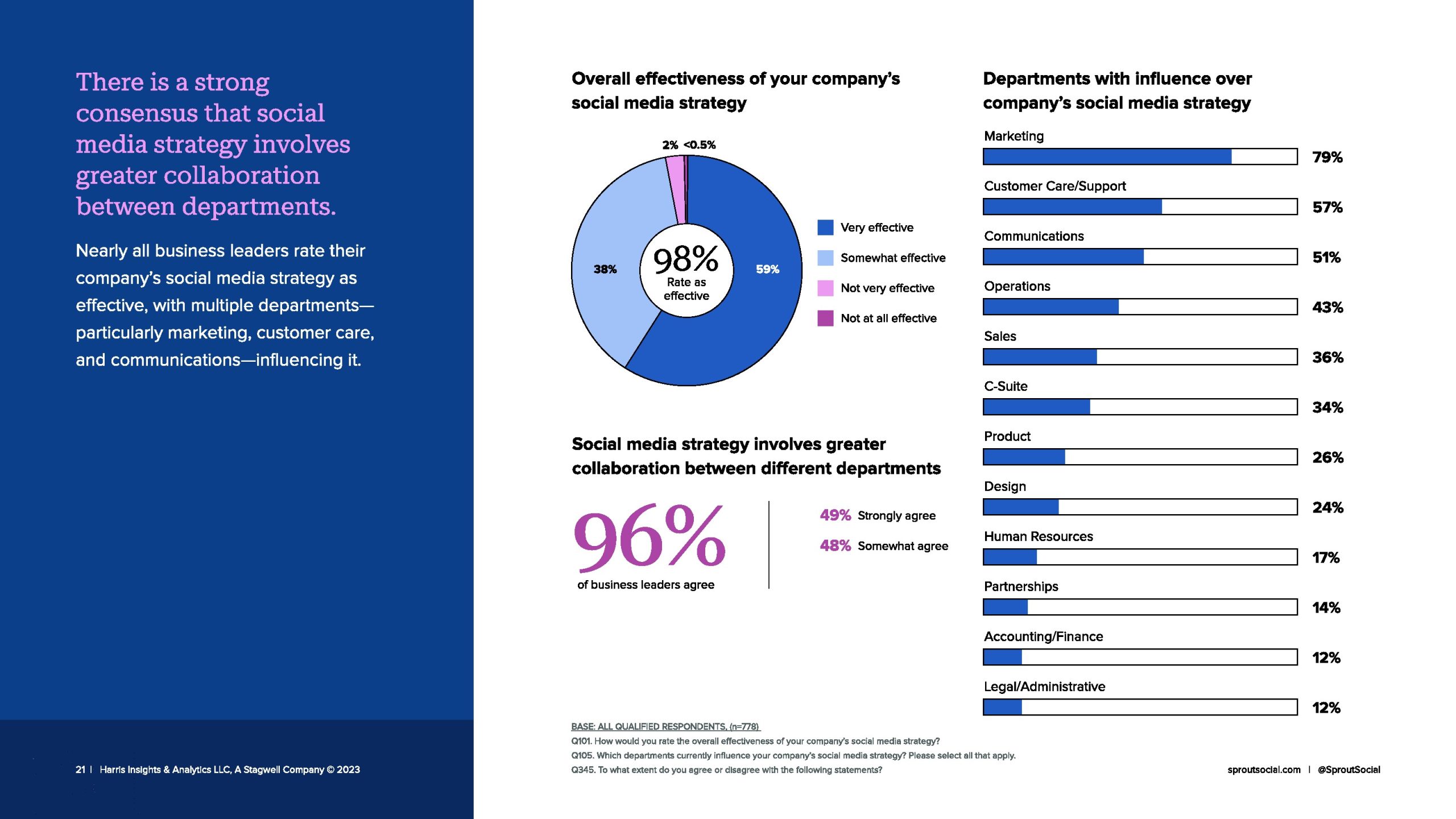 61%的受访者表示,实施这些技术最常见的好处是提高了社交媒体管理任务的生产力。这也是受访者最希望这些技术提供的结果,这表明他们确实从这些工具的集成中获得了价值。