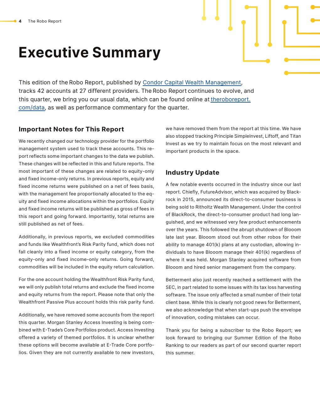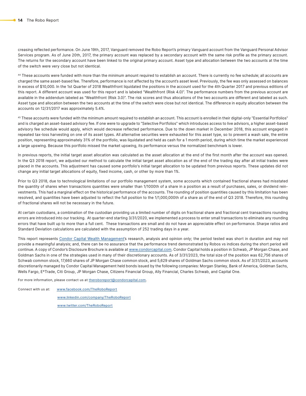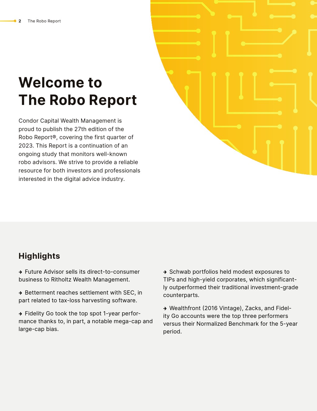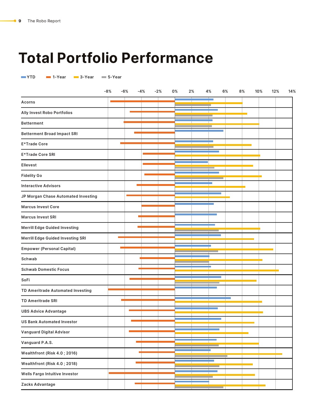 截至2023年3月31日的1年追踪期包括2022年的痛苦和2023年第一季度的混合复苏。Fidelity Go、Wealthfront(2016年份)和Ellevest是最佳投资组合的最佳赢家。虽然通常情况下,每个类别的获胜者都有许多相似之处,但有各种不同的驱动因素,最终使这些账户成为榜首。