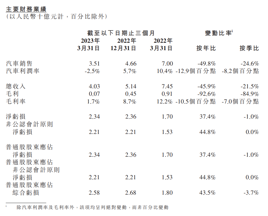 小鹏汽车董事长及首席执行官何小鹏表示:“2023年第一季度,我对公司的战略、组织和管理团队进行了果断的调整。我很有信心在接下来的几个季度打造产品销量、团队士气、客户满意度和品牌口碑的正循环。