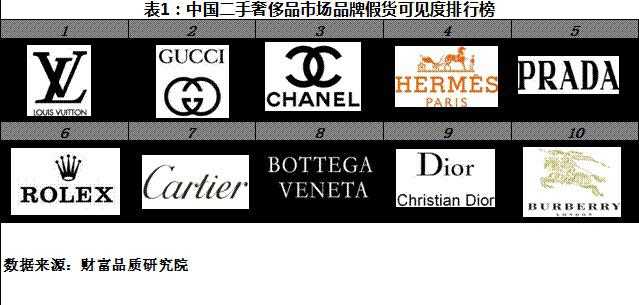 根据调研,财富品质研究院推出二手市场奢侈品牌假货可见度排行榜。