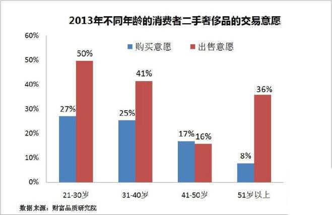 图2:2013年不同年龄的消费者二手奢侈品的交易意愿