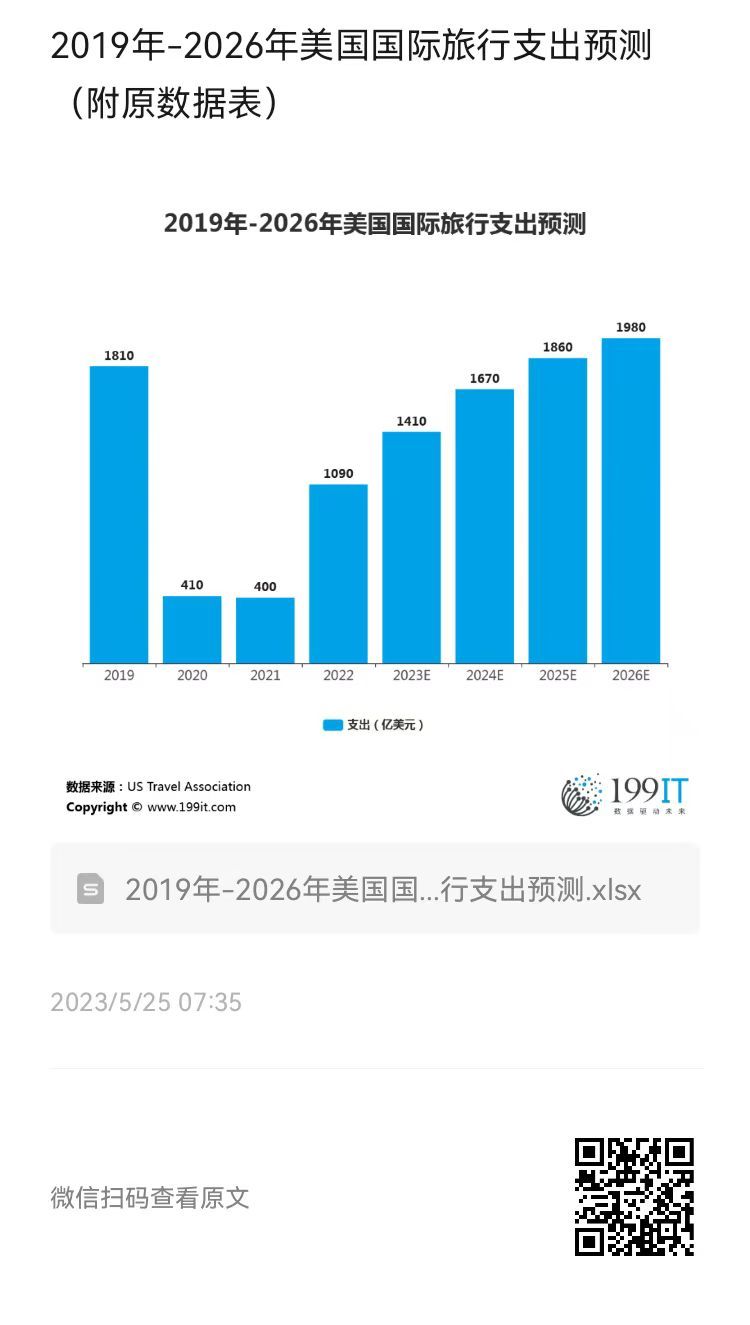 2019年-2026年美国国际旅行支出预测(附原数据表) ​​​