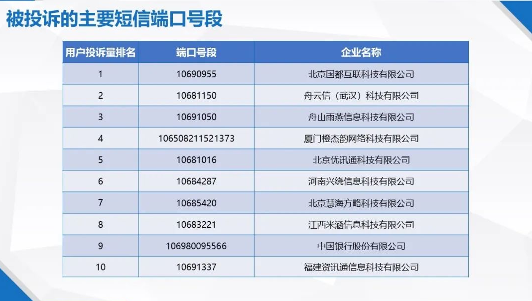 值得一提的是,12321还公布了被投诉的主要短信端口号段。短信号段是基于三大运营商的短信接口为用户提供增值服务的。短信平台以其精准投放、快速到达、费用低廉等特点,应用在各行各业中,是不可替代的营销利器!