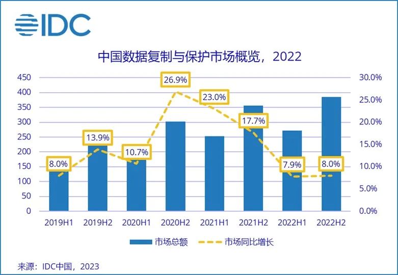 IDC于近日发布《中国数据复制与保护系统市场季度跟踪报告,2022》。报告显示,2022年,尽管疫情反复,但数据复制与保护(DR&P)市场较去年同期依旧实现了7.9%的增长,市场规模达到 6.6亿美元。随着分布式架构的落地,面对异构环境,金融、电信、制造业和教育行业在业务永续方面的要求逐步提升,这些行业成为DR&P市场增长的主要推动力;同时,随着数据要素价值的提升,2022年底,“数据二十条” 正式发布,“数据确权”与合规成为近期市场关注的焦点,也将对未来几年数据复制与保护市场产生积极影响。