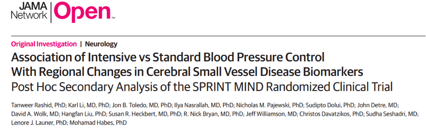 该研究是对SPRINT研究进行的一项事后分析,对基线和随访时有脑磁共振成像记录的参与者进行了评估。主要终点是VMLs、FA、平均扩散系数(MD)和CBF的变化。
