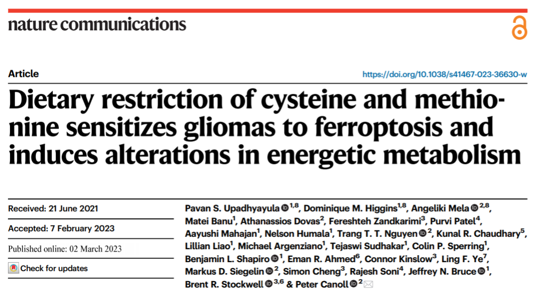 [1] Pavan S. Upadhyayula et al, Dietary restriction of cysteine and methionine sensitizes gliomas to ferroptosis and induces alterations in energetic metabolism, Nature Communications (2023). DOI: 10.1038/s41467-023-36630-w