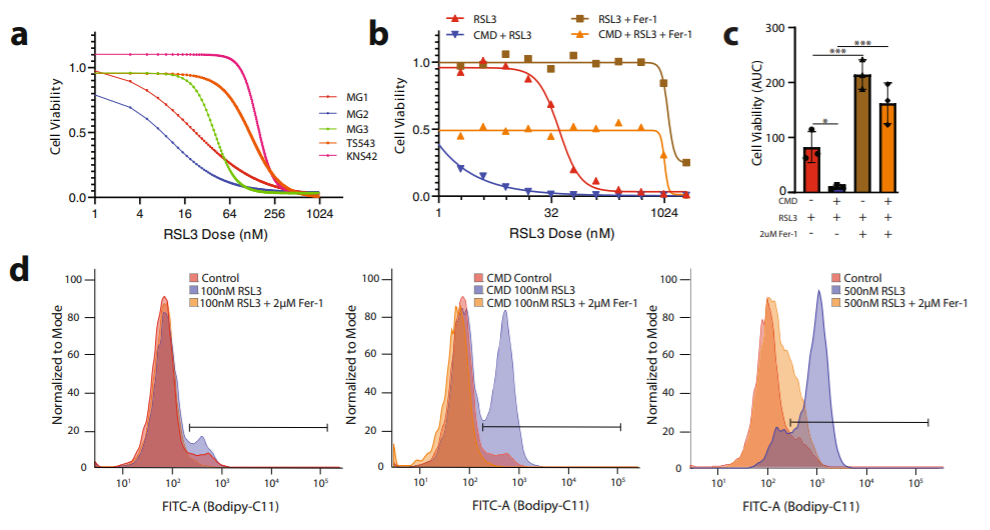 然而人类星形胶质细胞对GPX4抑制剂和CMD条件引起的细胞死亡并不敏感,这也暗示这种铁死亡机制可能是肿瘤特异性的。