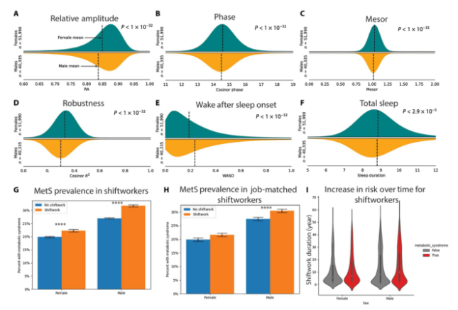 对此,研究者使用来自英国生物库的资源,对2013年至2015年的92325位英国昼夜轮班工作者的健康状况进行了分析,以确定在人类群体中,昼夜节律失调是否也存在性别差异。最终发现了与小鼠实验类似的规律:相比于女性昼夜轮班工作者,男性昼夜轮班工作者似乎在昼夜节律失调中遭受更严重的健康危害,调整影响因素后结果不变。