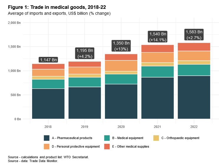 这一积极趋势持续到2021年,医疗产品贸易额进一步增长14.1%,主要是由于药品贸易的大幅增长。