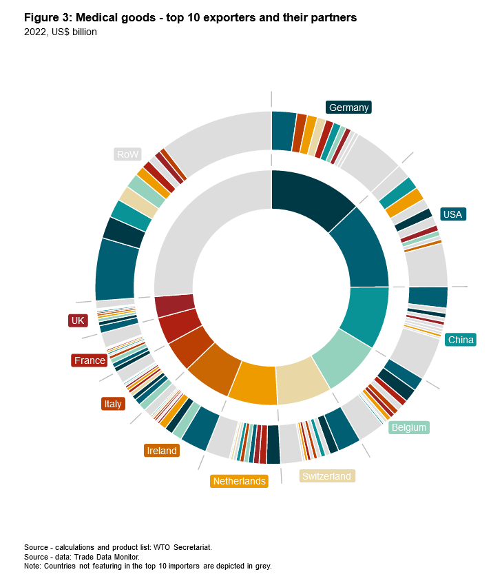 2022年,排名前十的医疗产品出口国占全球总量的近四分之三。