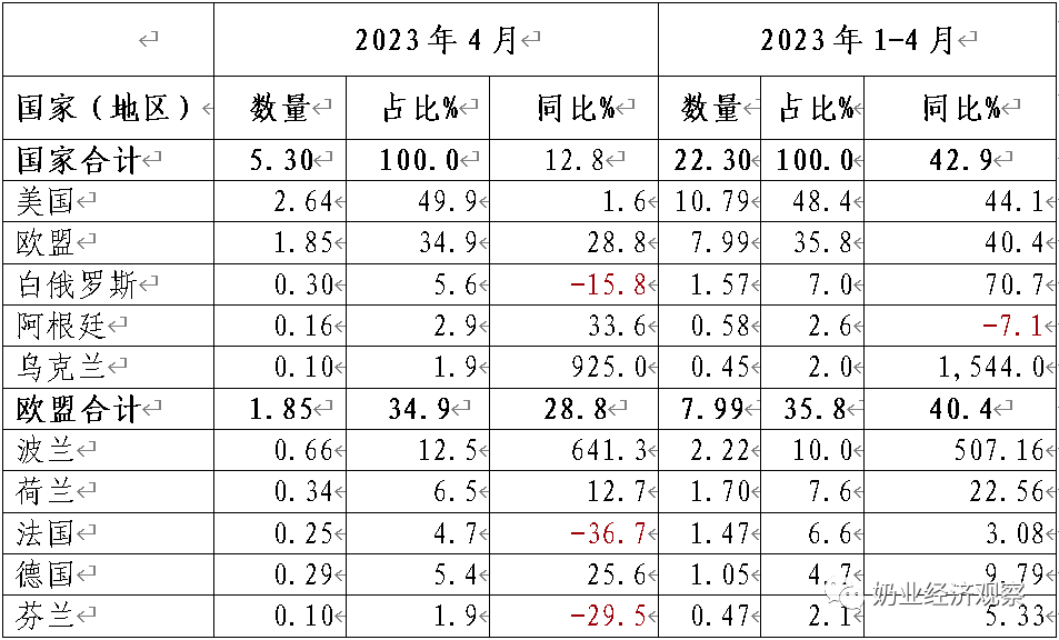 Table 1‑1中国乳制品进口情况2023.01-04