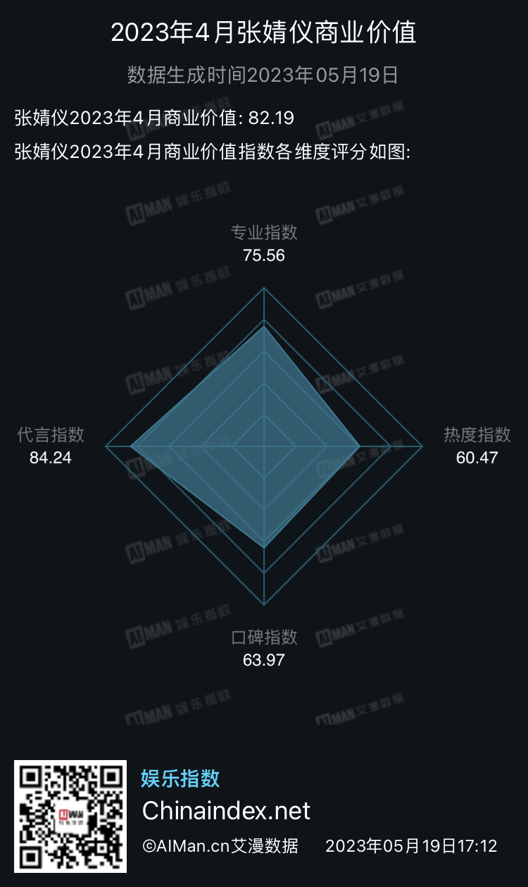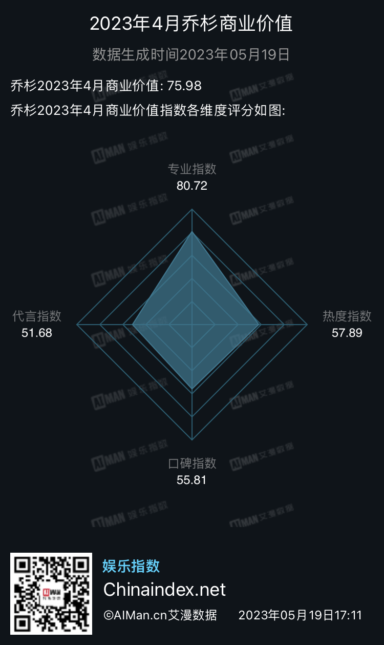 影片其他主演乔杉、张婧仪等也在4月取得了出众的商业价值成绩。
