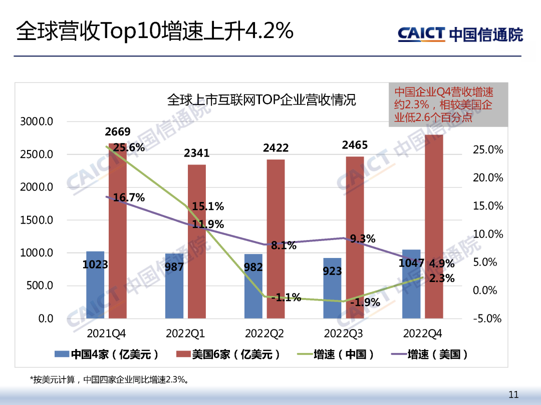 - 营收方面,2022年Q4我国上市互联网企业营收为6.3%;