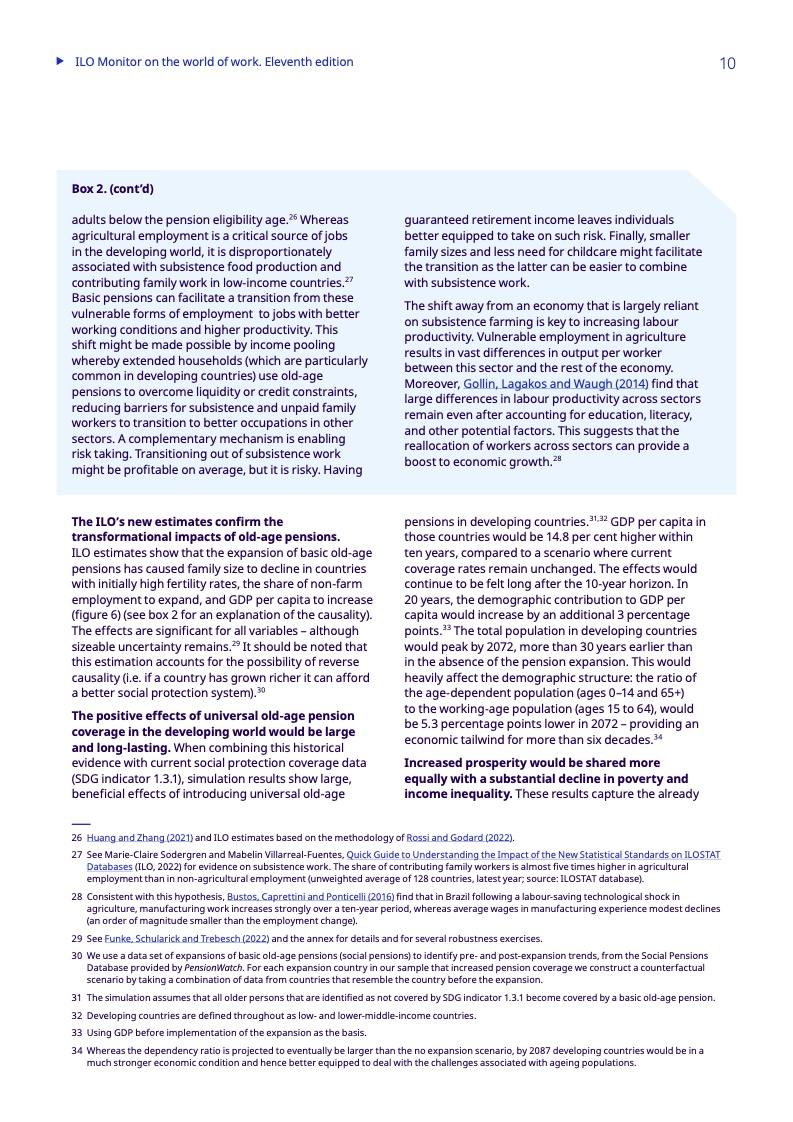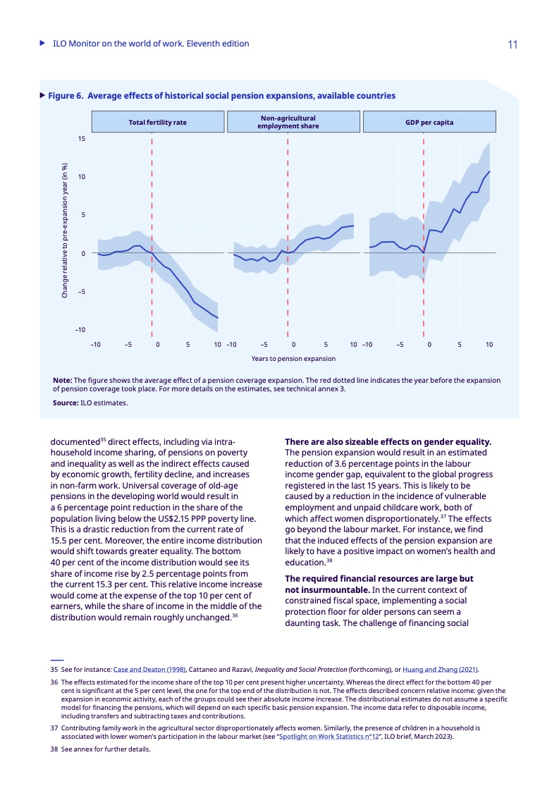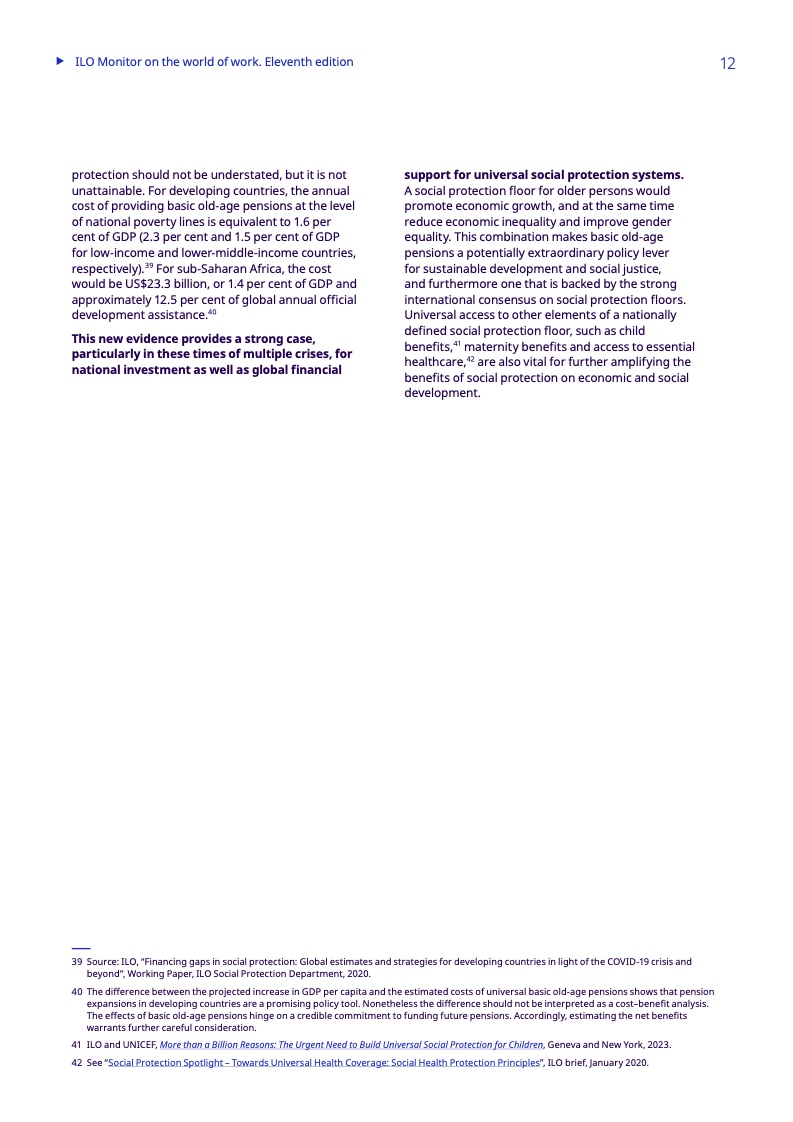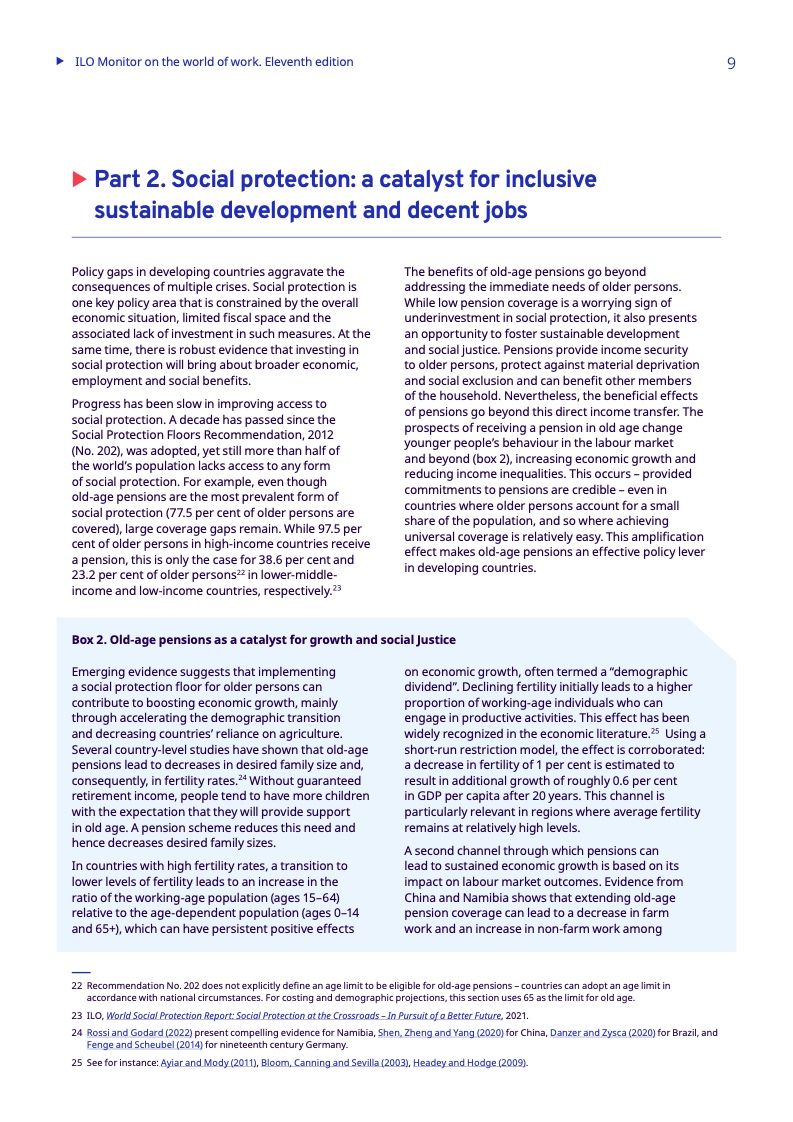 报告研究了基本养老金,特别是在中低收入国家和低收入国家,这些国家分别只有38.6%和23.2%的老年人领取养老金,而全球的比例为77.5%。