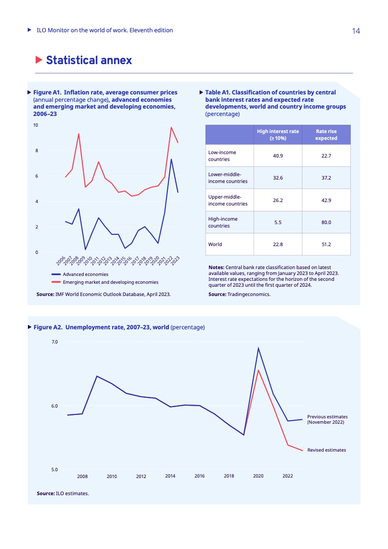 根据劳工组织的预测,非洲和阿拉伯地区的低收入国家今年不太可能恢复到大流行前的失业水平。就北非而言,2023年的失业率预计为11.2%(2019年为10.9%);撒哈拉以南非洲为6.3%(2019年为5.7%);阿拉伯国家为9.3%(2019年为8.7%)。