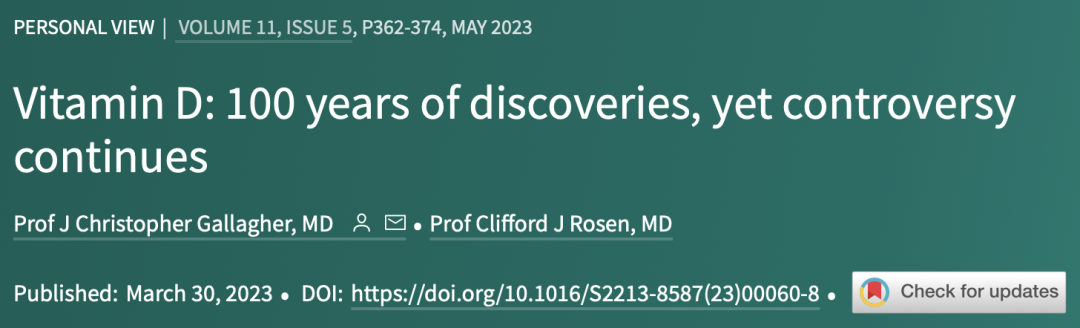 [2]Gallagher JC, Rosen CJ. Vitamin D: 100 years of discoveries, yet controversy continues. Lancet Diabetes Endocrinol. 2023 May;11(5):362-374. doi: 10.1016/S2213-8587(23)00060-8. Epub 2023 Mar 30. Erratum in: Lancet Diabetes Endocrinol. 2023 Apr 19;: PMID: 37004709.