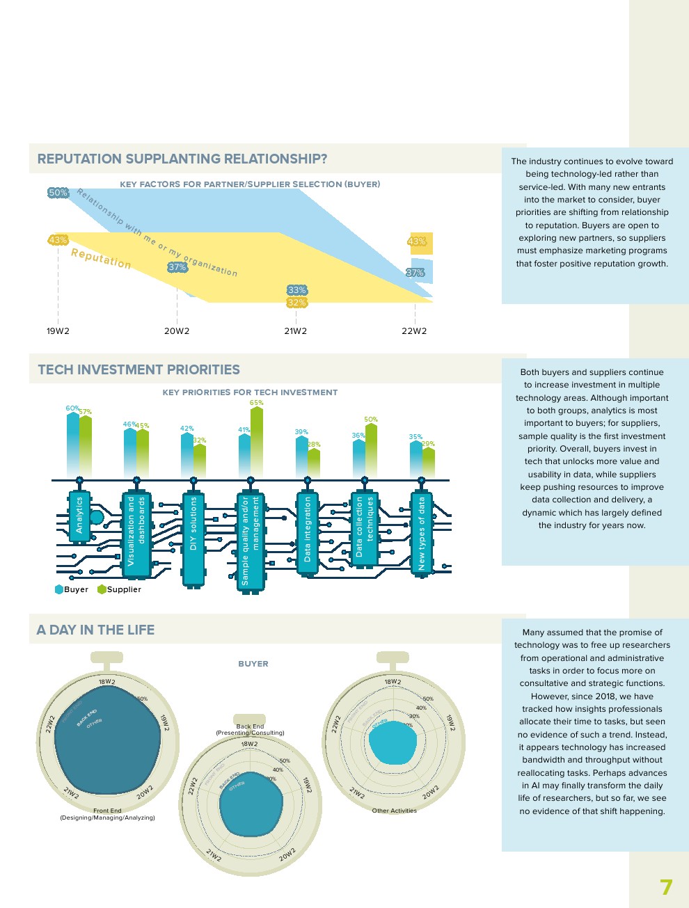 根据最新的研究行业趋势报告,与去年相比,洞察买家在许多领域都处于领先地位。在2022年下半年接受调查的受访者现在表示,他们平均领先3.8个领域,而2021年下半年为3.2个,2020年下半年为3.1个。