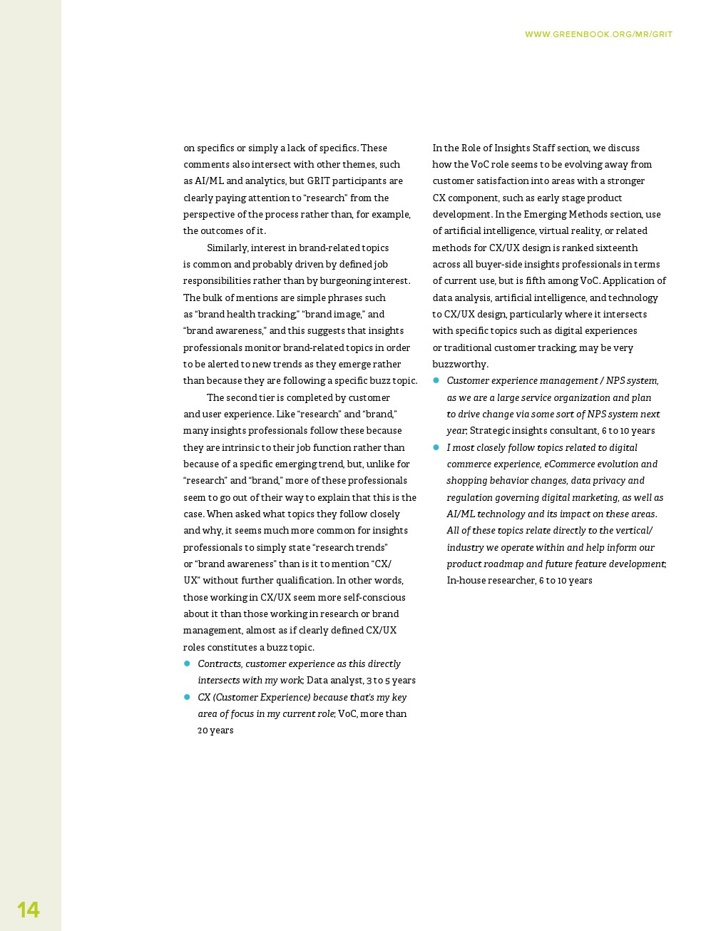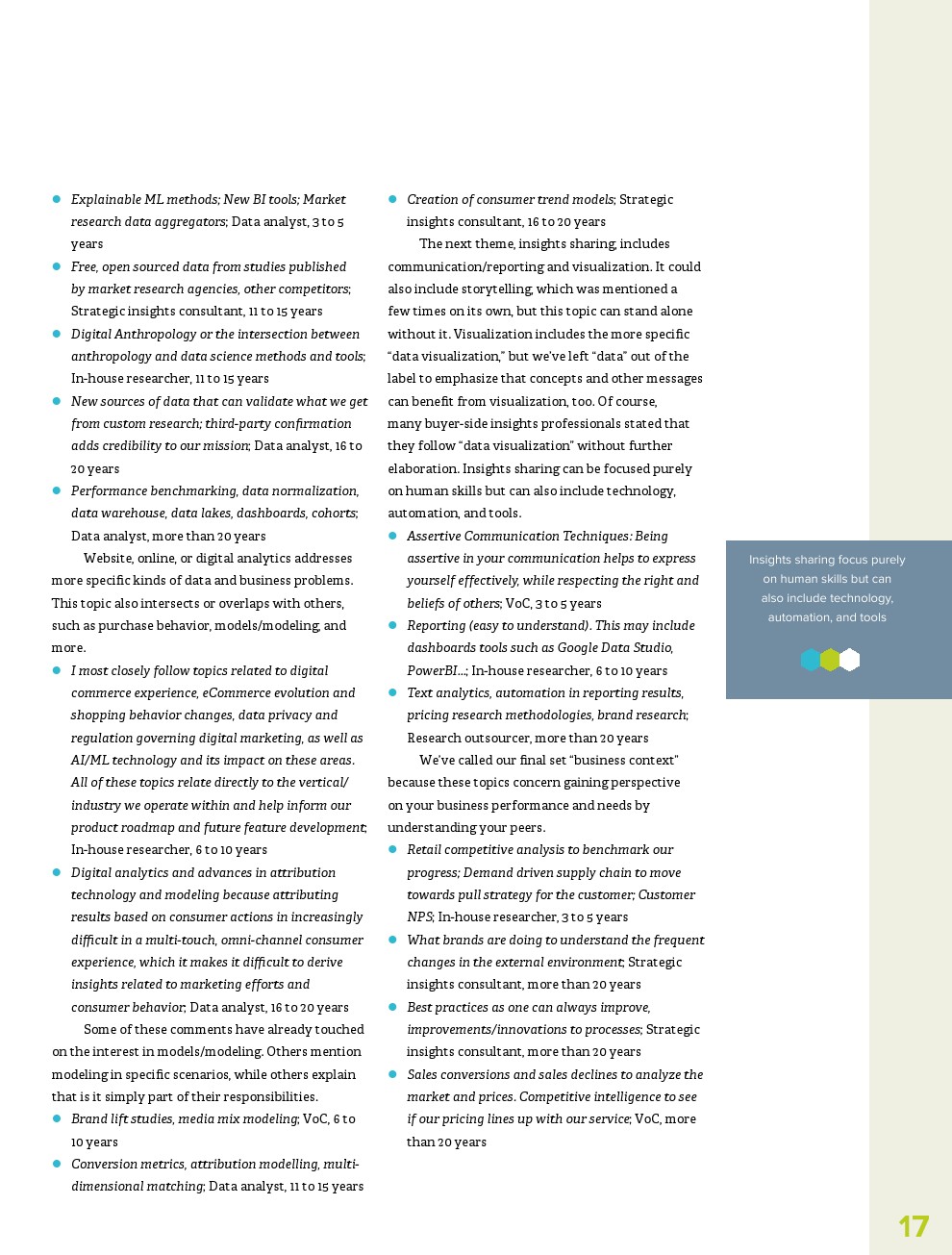 买家组织的洞察专家最直接影响的领域是态度和意见(82%),其次是品牌定位(从71%上升至77%)。更多的受访者表示,这对客户满意度或忠诚度(从71%上升至76%)、品牌跟踪(从68%上升至74%)以及市场规模或机会(从67%上升至74%)产生了直接影响。