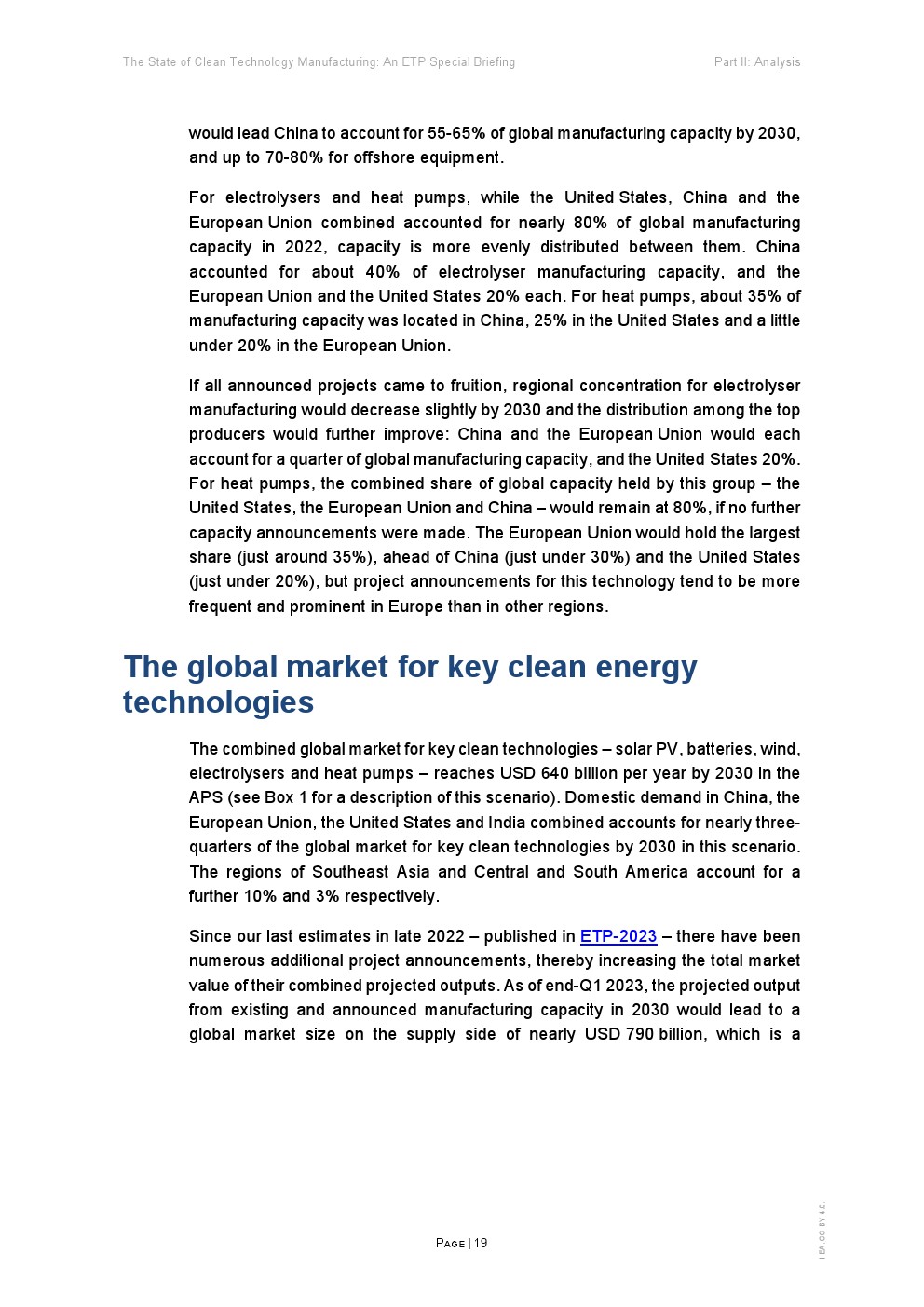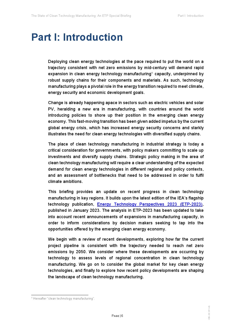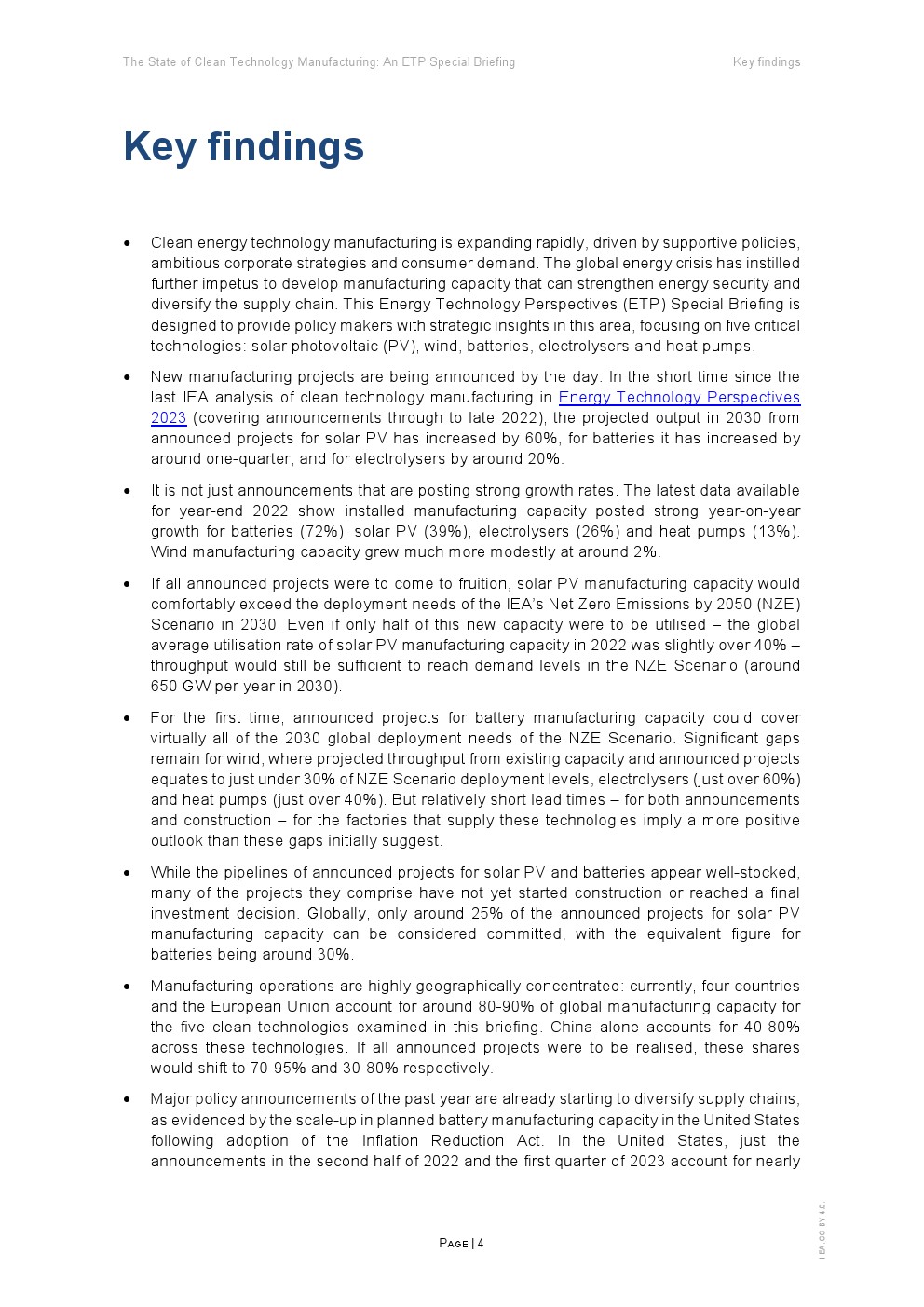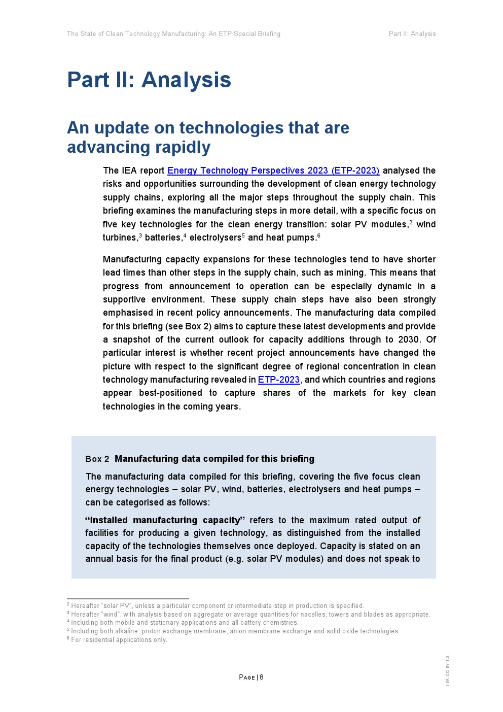 在支持性政策、雄心勃勃的企业战略和消费者需求的推动下,清洁能源技术制造业正在迅速扩张。全球能源危机进一步推动了制造业的发展,从而加强能源安全和促进供应链多样化。这份能源技术展望(ETP)旨在为政策制定者提供该领域的战略见解,重点关注五项关键技术:太阳能光伏(PV)、风能、电池、电解槽和热泵。