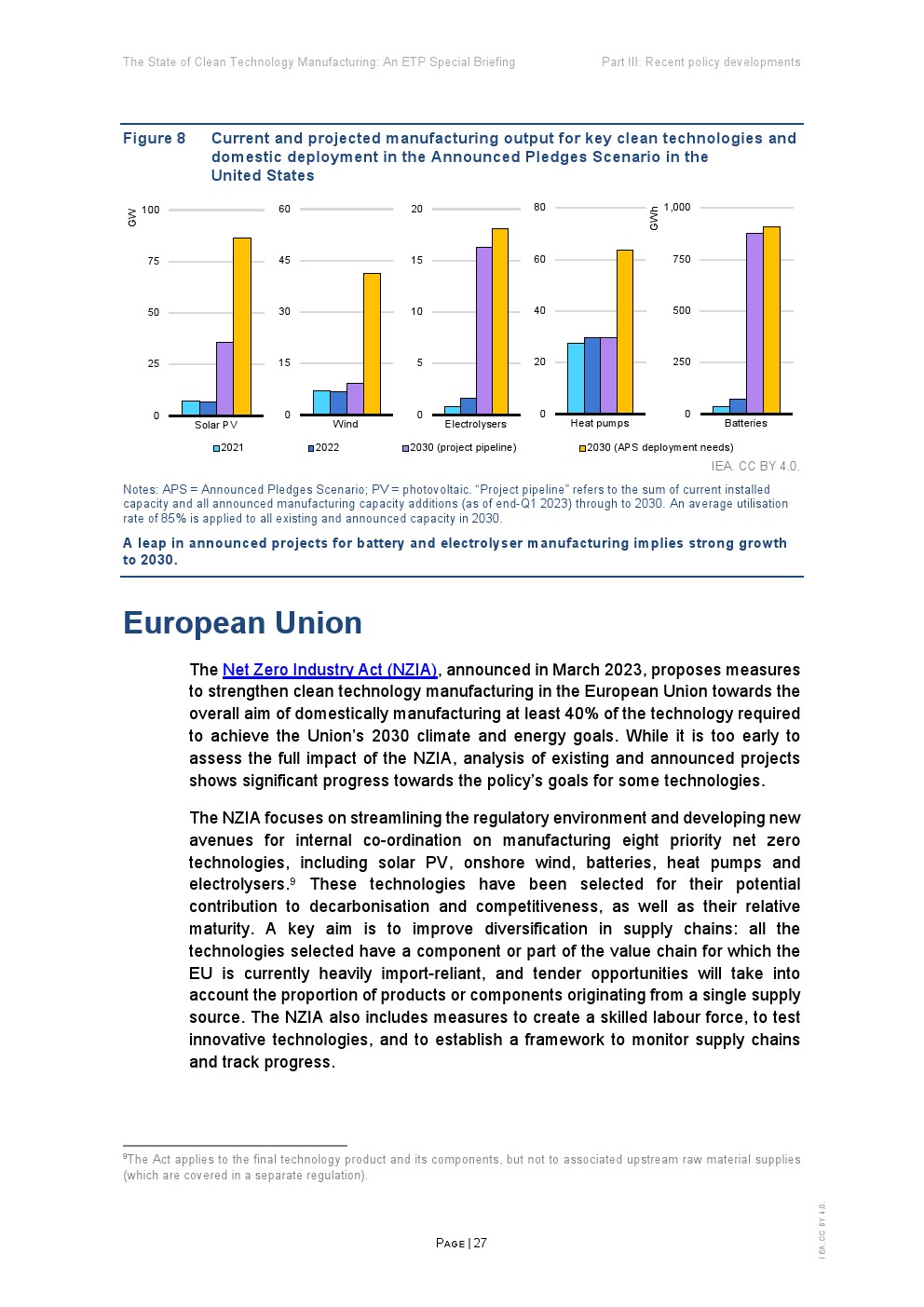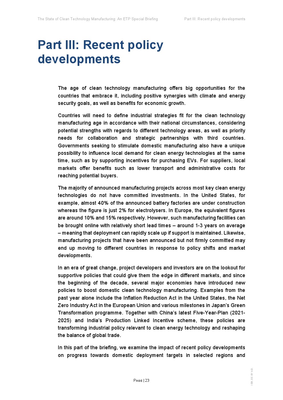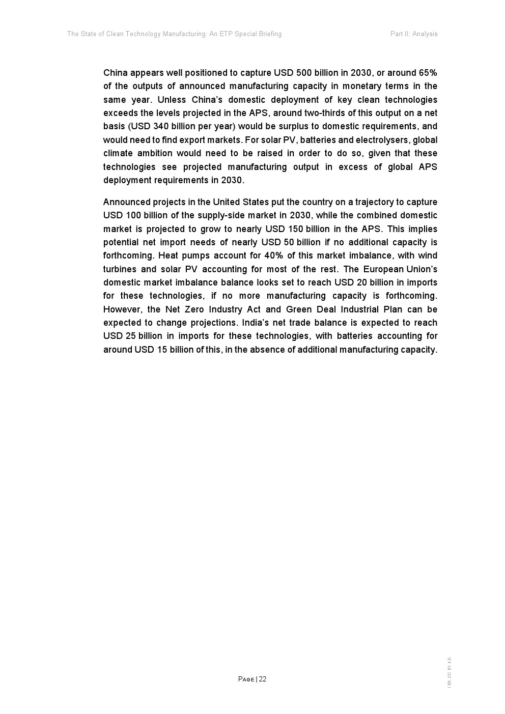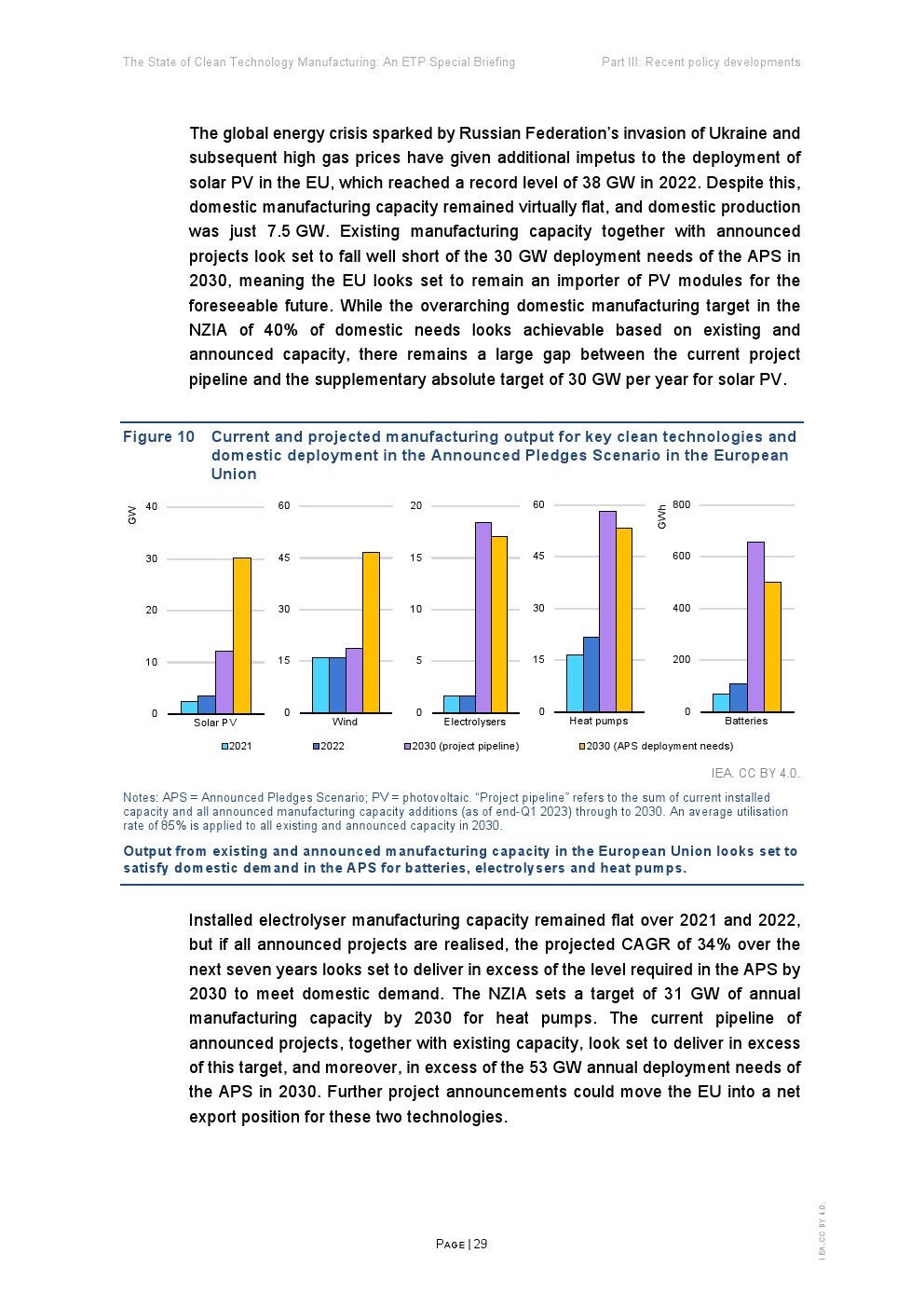 在支持性政策、雄心勃勃的企业战略和消费者需求的推动下,清洁能源技术制造业正在迅速扩张。全球能源危机进一步推动了制造业的发展,从而加强能源安全和促进供应链多样化。这份能源技术展望(ETP)旨在为政策制定者提供该领域的战略见解,重点关注五项关键技术:太阳能光伏(PV)、风能、电池、电解槽和热泵。
