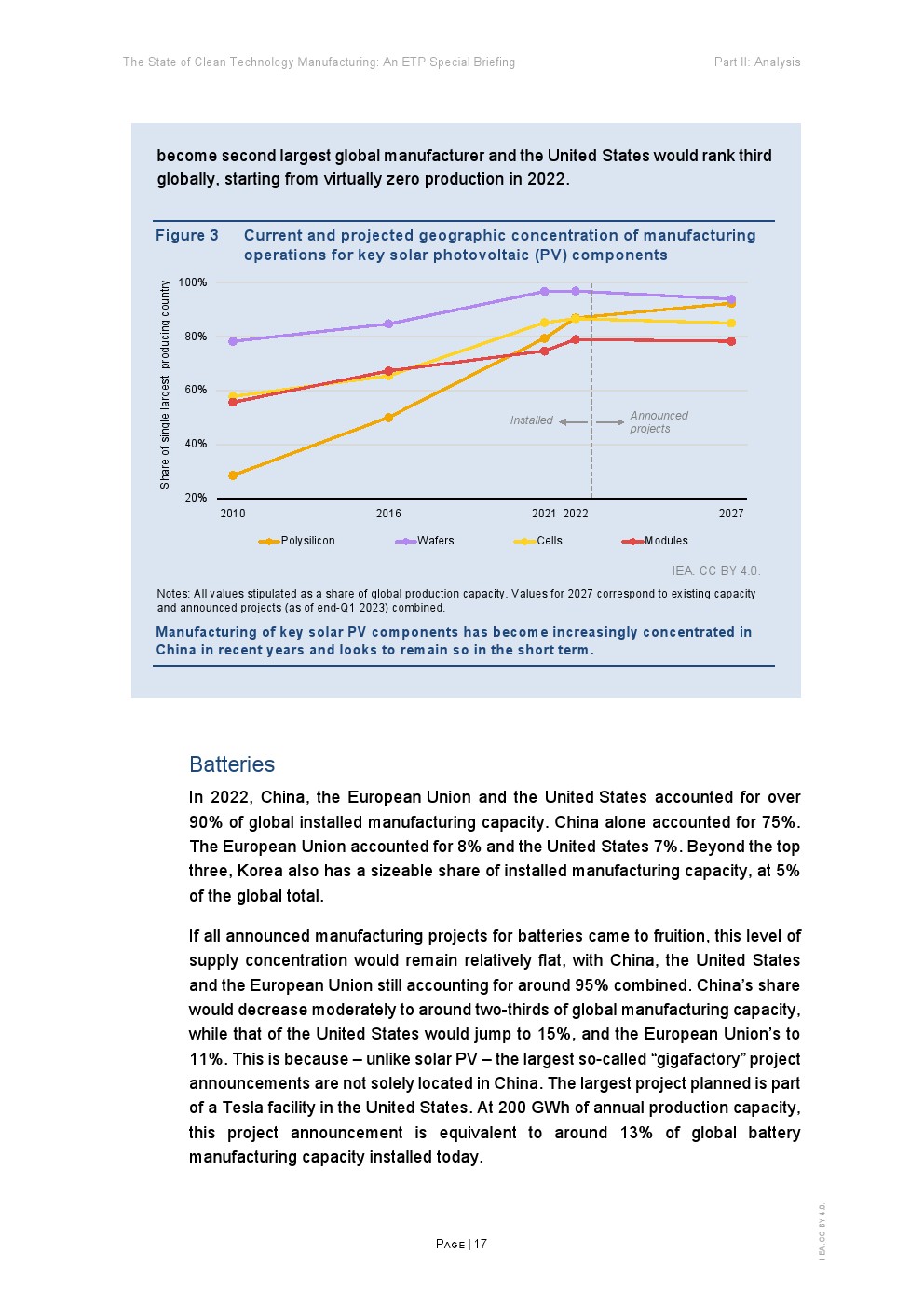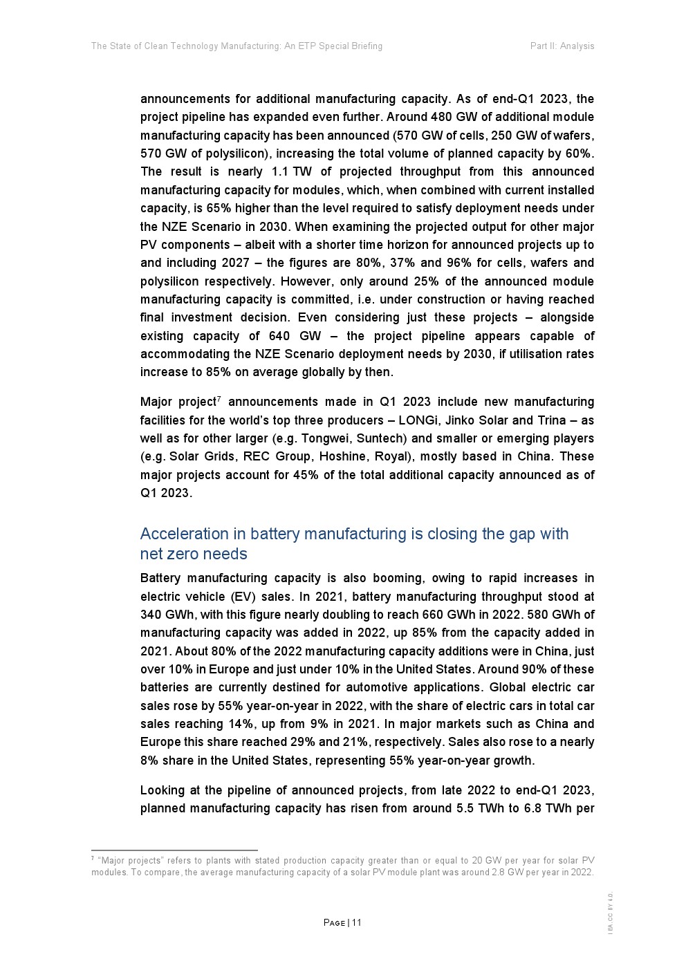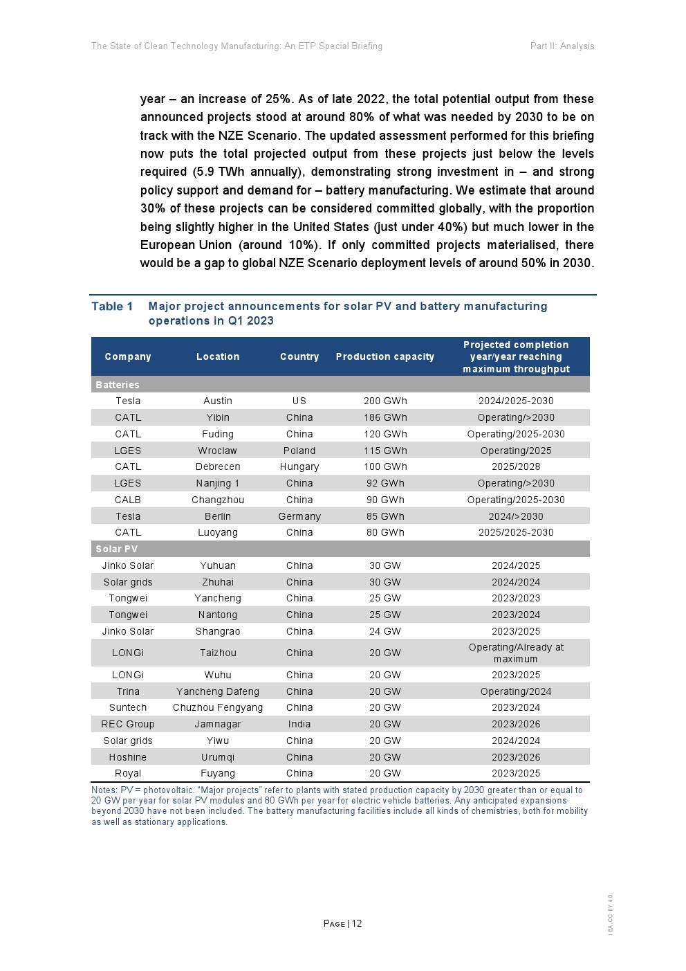 新的制造项目每天都在宣布。自国际能源署(IEA)在《2023年能源技术展望》(Energy technology Perspectives 2023)中对清洁技术制造业进行分析以来的短时间内,已宣布的太阳能光伏项目到2030年的预计产量增长了60%,电池项目增长约1/4,电解槽项目增长约20%。