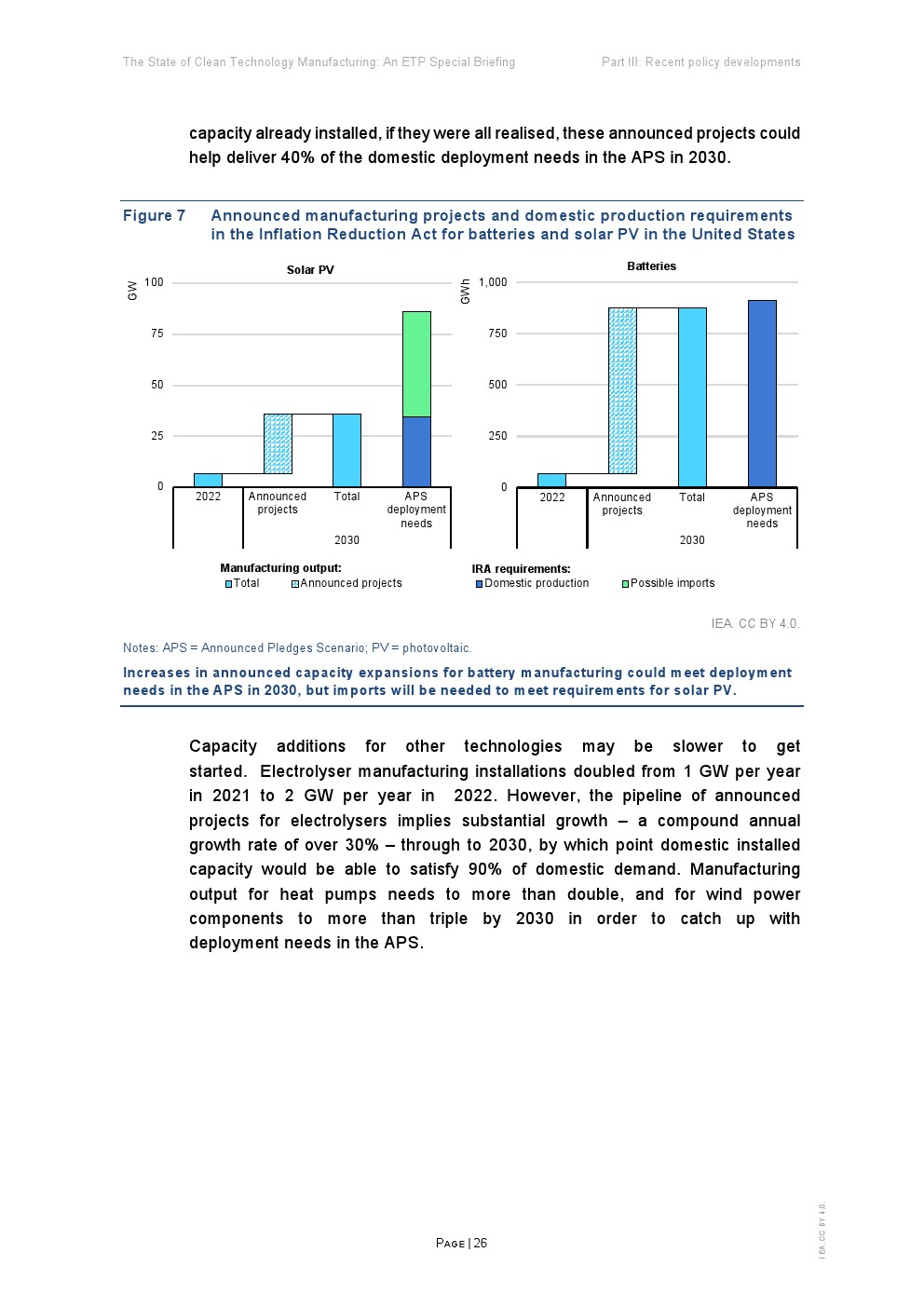 并不是只有公告公布了强劲的增长率。2022年底的最新数据显示,电池(72%)、太阳能光伏(39%)、电解槽(26%)和热泵(13%)的装机容量同比增长强劲。风能制造能力的增长要温和得多,约为2%。