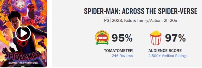 由索尼影业出品的蜘蛛侠动画片第二部《纵横宇宙》周五在北美地区取得5180万美元首日票房,不仅口碑碾压一众真人超英片,甚至连票房都超越了——漫威自家的《银河护卫队》首日录得4810万美元,还不如这部小屁孩动画片。