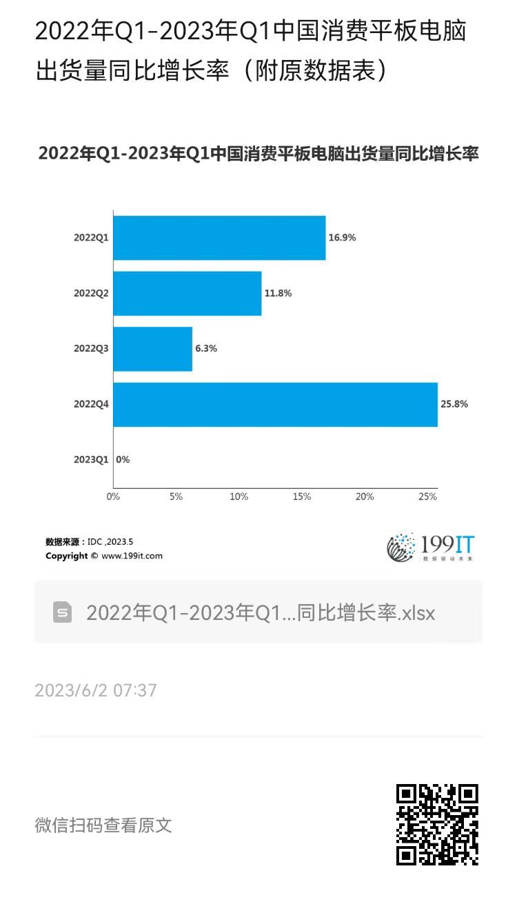 - 2022年Q2-2023年Q2中国消费平板电脑市场出货量同比(附原数据表)