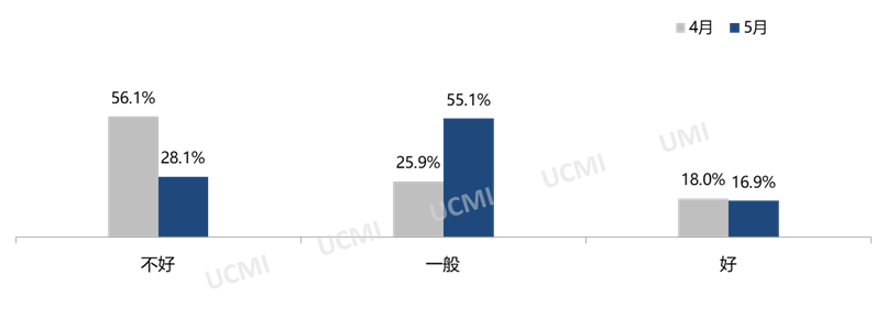谈及对下月的预期,二手车经理人表示:进入到5月份后,市场需求与进店集客都有所下降,而在销售价格下降的同时也未能解决现有的库存压力,仍旧占用了大部分流通资金,库存周转时间也将会延长至6月份,对6月份的经营状况不太看好。