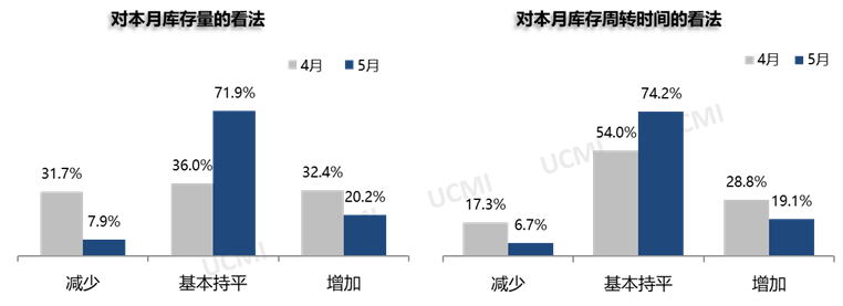 调查显示,5月份库存量与库存周转时间均有所增加。其中认为库存量“增加”的二手车经理人比例为20.2% ;认为库存周转时间“增加”的二手车经理人比例为19.1%。