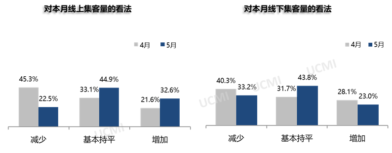 调查显示,5月份线上集客量有所增加、线下集客量有所减少。其中认为线上集客量“增加”的二手车经理人比例为32.6%;认为线下集客量“减少”的二手车经理人比例为33.2%。