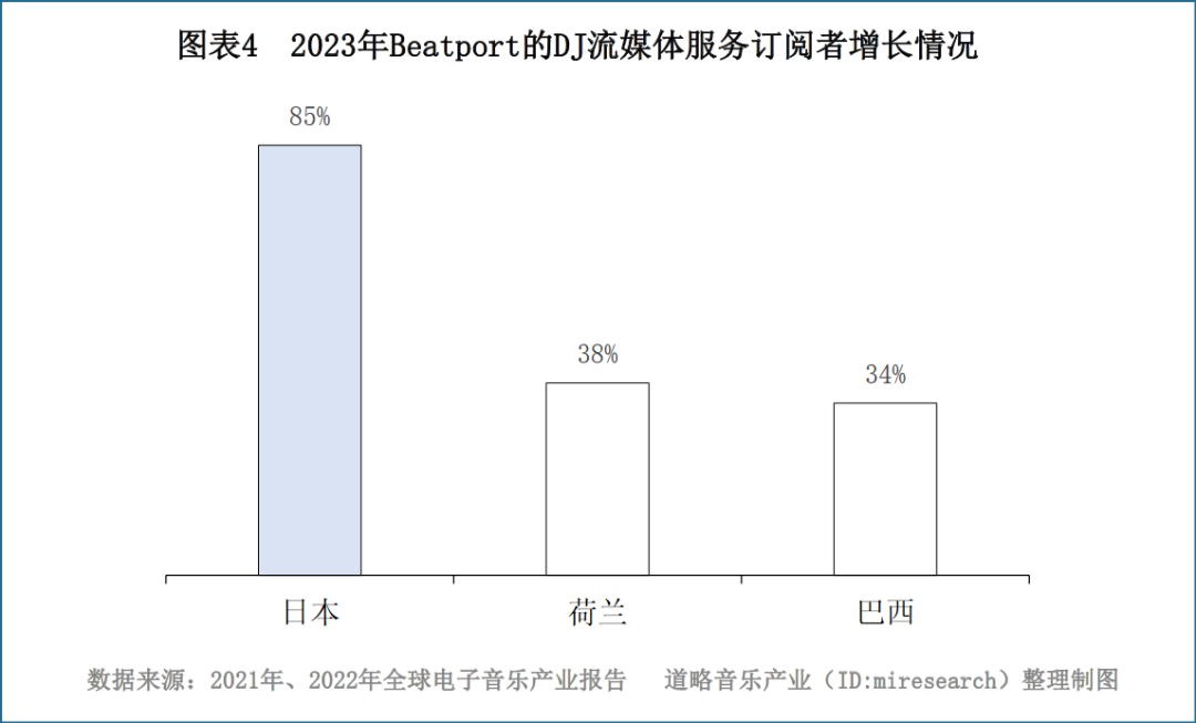 《2023年度IMS全球电子音乐产业报告》显示,自2017年以来,Beatport的下载销售每年都增长5-10%。同时,Beatport的DJ流媒体服务也拥有良好的发展态势,国际订阅者增长强劲。