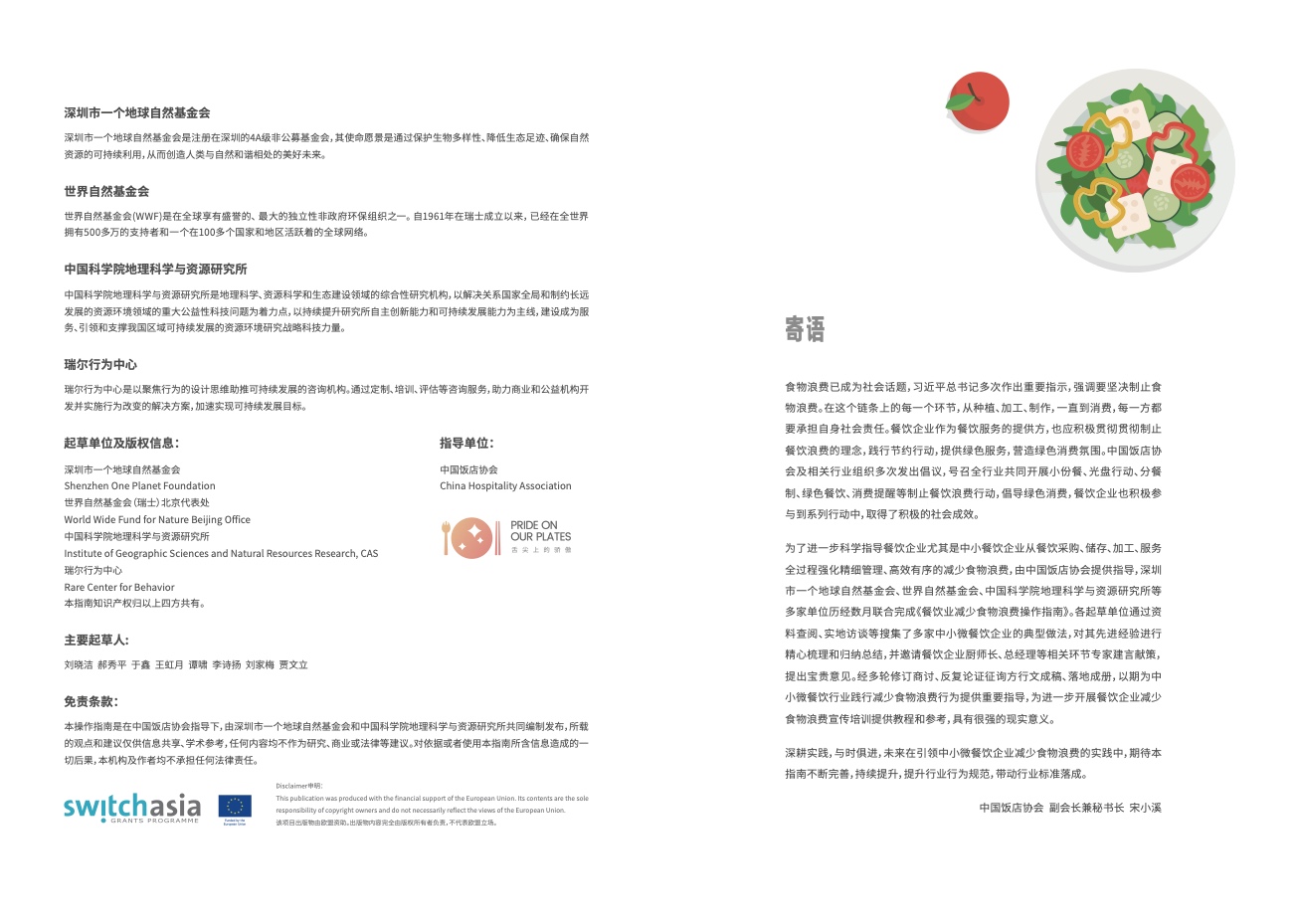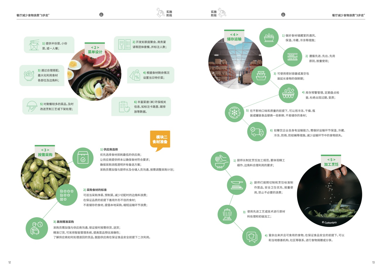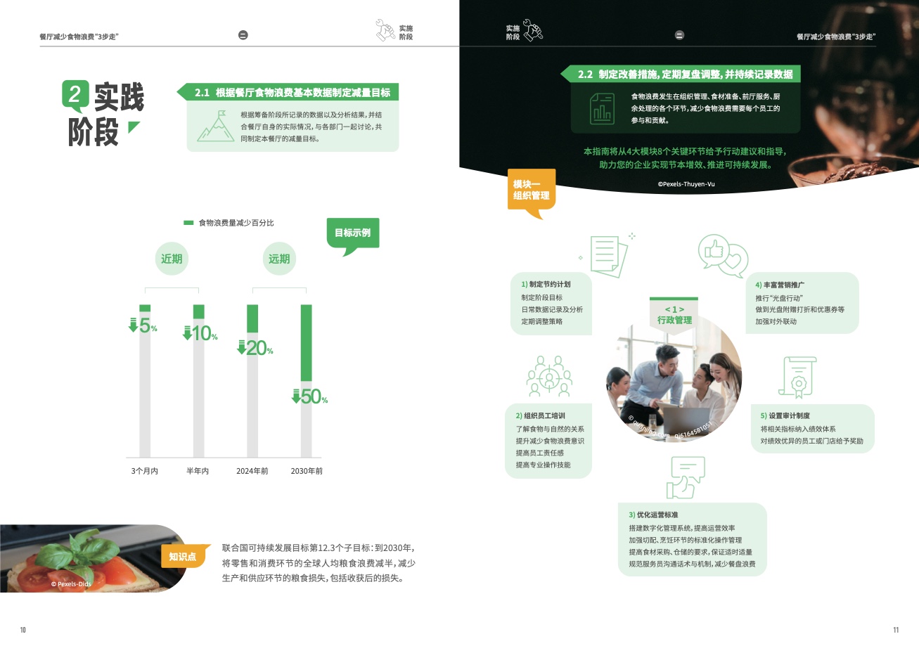 减少粮食损失和浪费是提高粮食安全的重要手段和紧迫的全球性命 题。餐饮企业作为食物供应链下游的重要参与方,可以推动消费端及 食材供应端的食物浪费减量,有助于推动联合国可持续发展目标12.3 的实现,为消除饥饿的全球计划和维护国家粮食安全贡献力量。