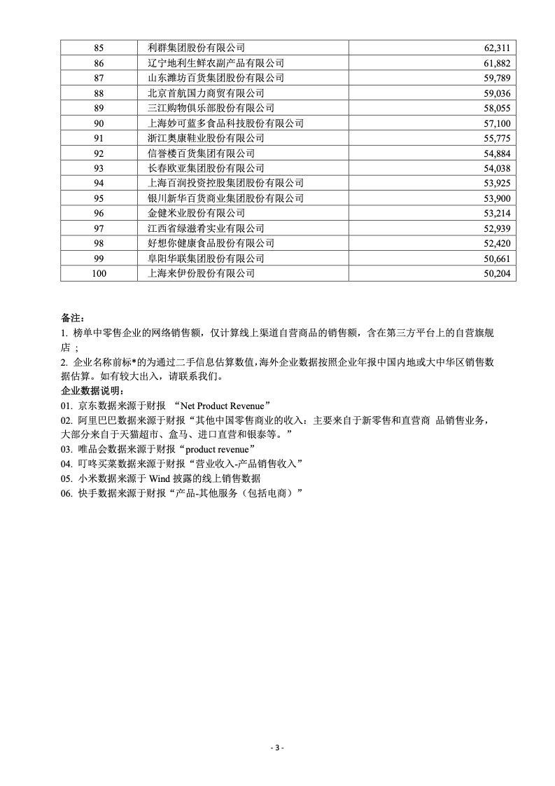 中国连锁经营协会联合德勤共同发布2023中国网络零售TOP100榜单!