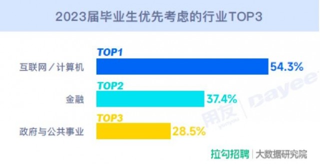 在众多赛道中,互联网/计算机依然是应届生求职最受欢迎的领域。《报告》分析认为一方面Z世代的思维和行为深受网络影响,对该行业有更多好感;另一方面随着ChatGPT出圈爆红,就业市场也掀起一股人工智能热,在互联网计算机行业内,人工智能方向越来越受年轻人青睐。