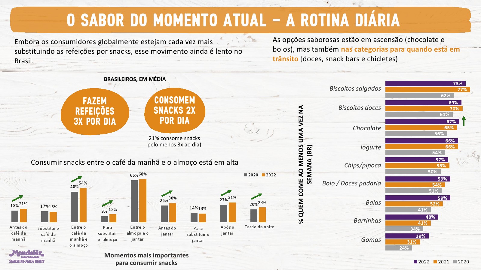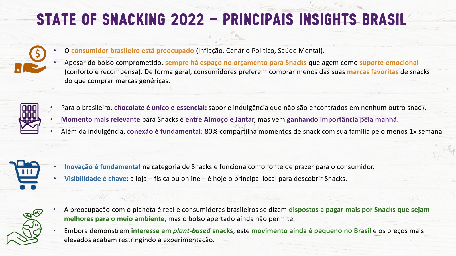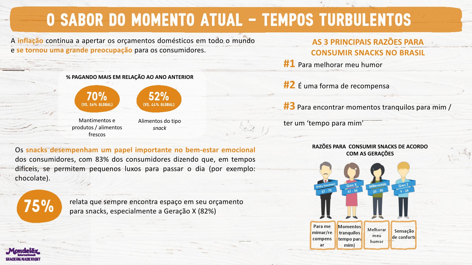 巴西消费者担心通货膨胀、政治形势和心理健康。尽管预算紧张,但预算中总有空间容纳作为情感支持(安慰和奖励)的零食。零食在消费者的情绪健康中扮演着重要的角色。83%的消费者表示,在困难时期,他们允许自己食用小奢侈品(如巧克力)度过一天。