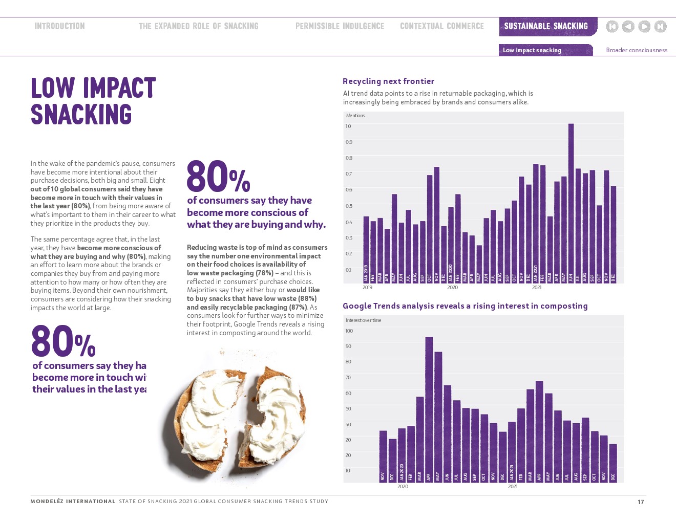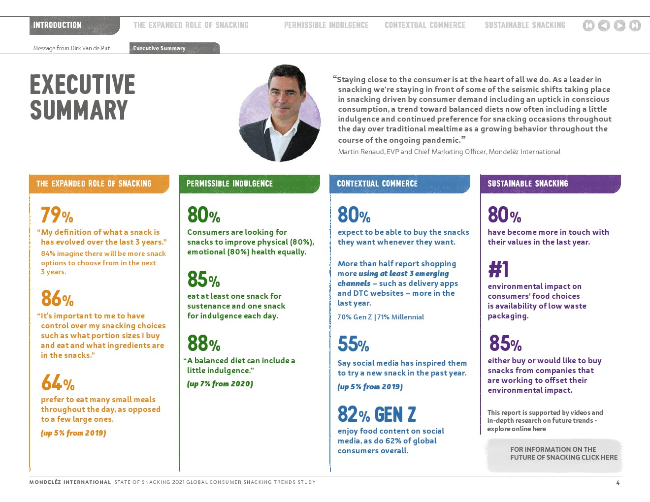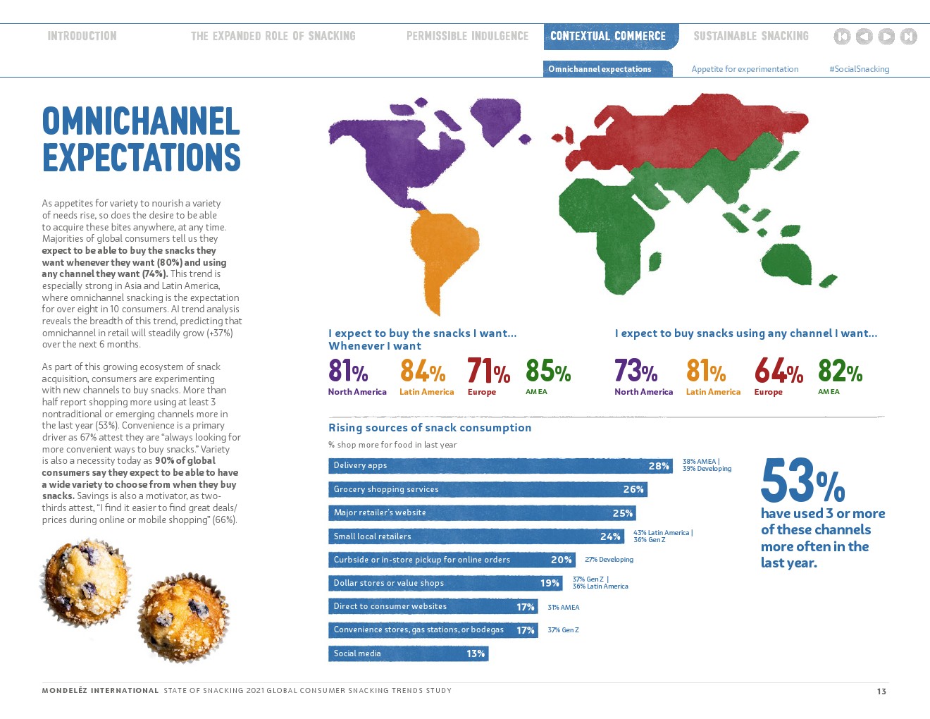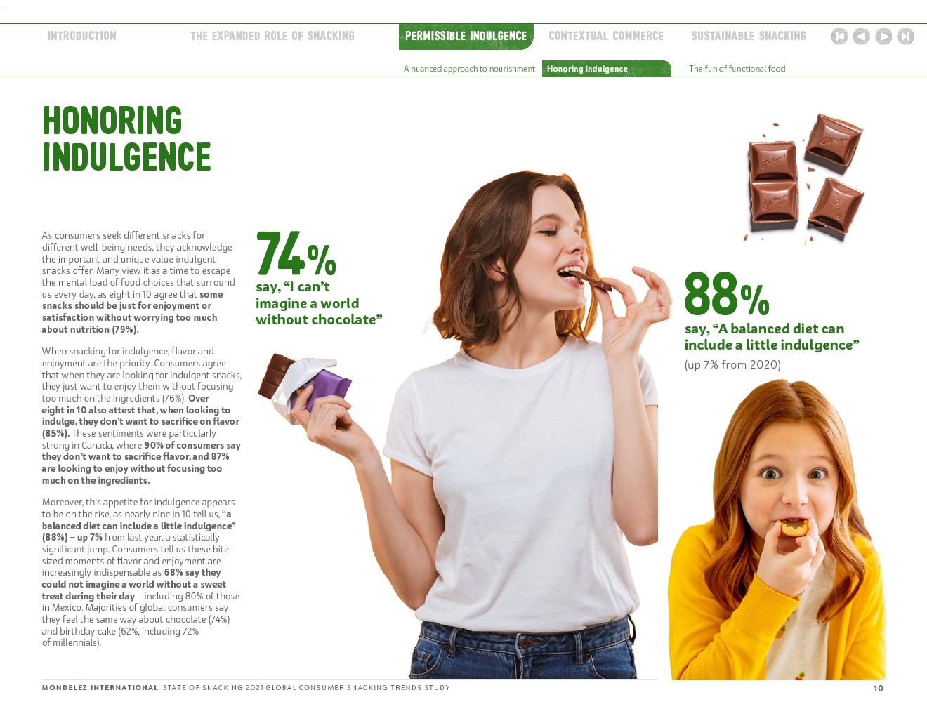 随着世界不断适应变化的动态,与消费者保持密切联系仍然是我们的首要任务。这样做可以让我们更好地理解零食在消费者生活中扮演的不断变化的角色,探索如何更好地与他们建立联系,以满足他们的生理、心理和情感健康需求;了解消费者吃零食的灵感来自哪里;并揭示他们的零食和购物习惯是如何演变的,以更充分地符合他们的价值观。