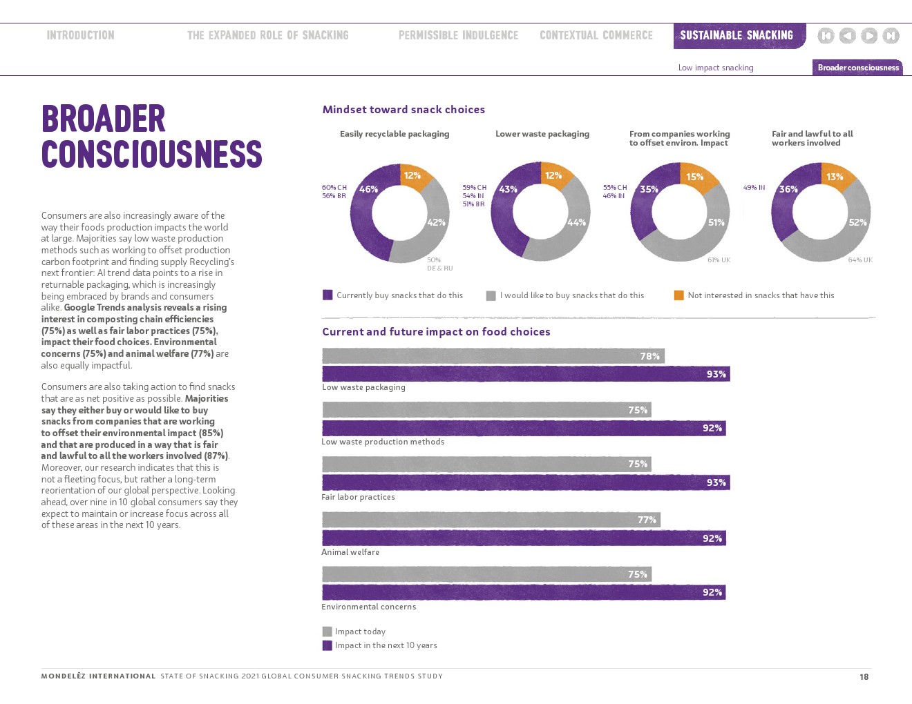 85%的人购买或想要购买那些正在努力抵消其对环境影响的公司的零食。