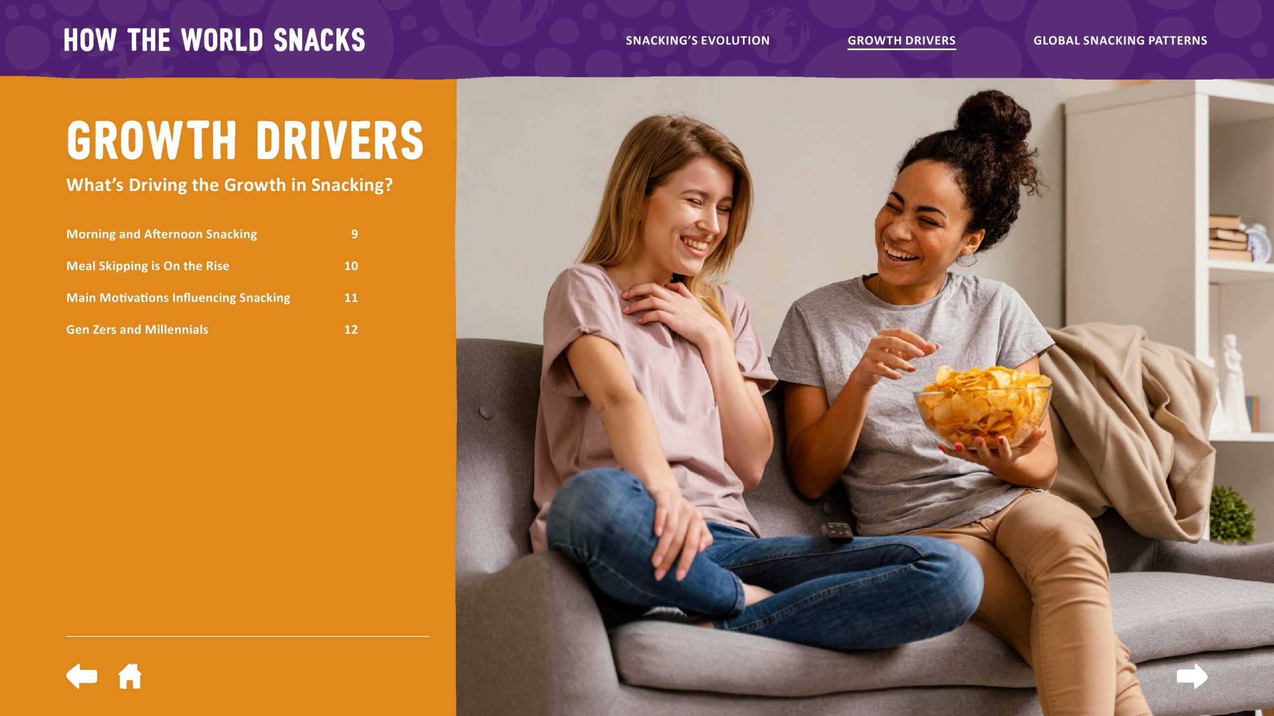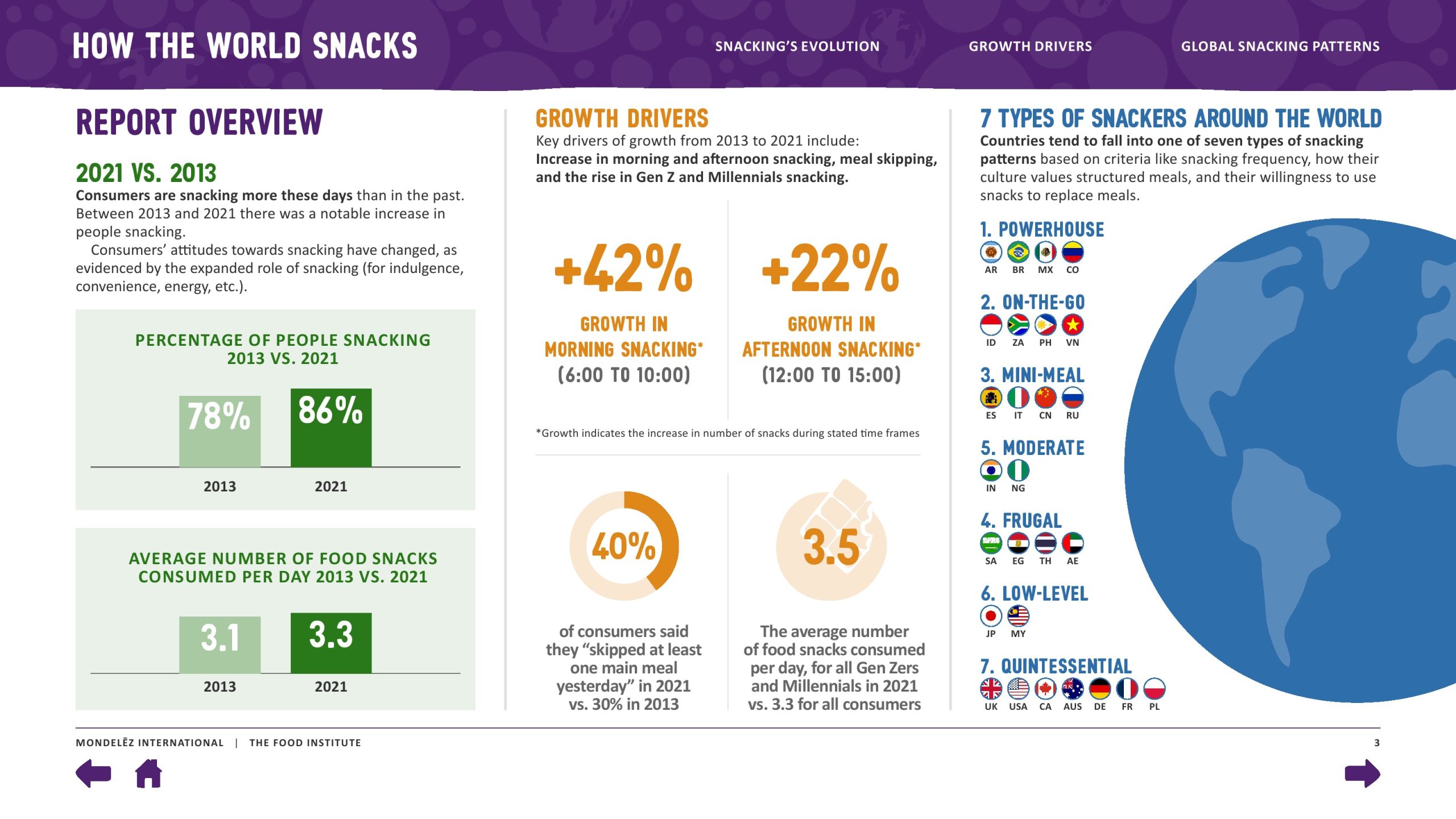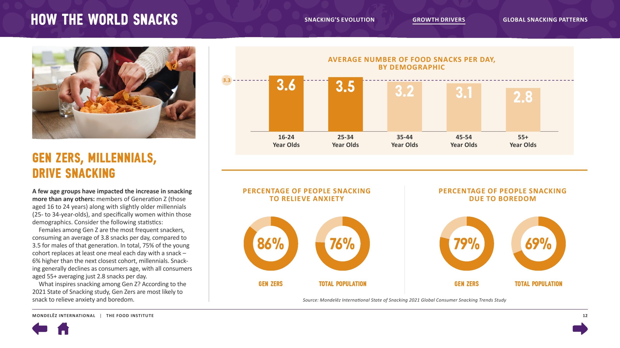 从2013年到2021年的主要增长动力包括:上午和下午零食的增加,不吃饭,以及Z世代和千禧一代零食需求上升。
