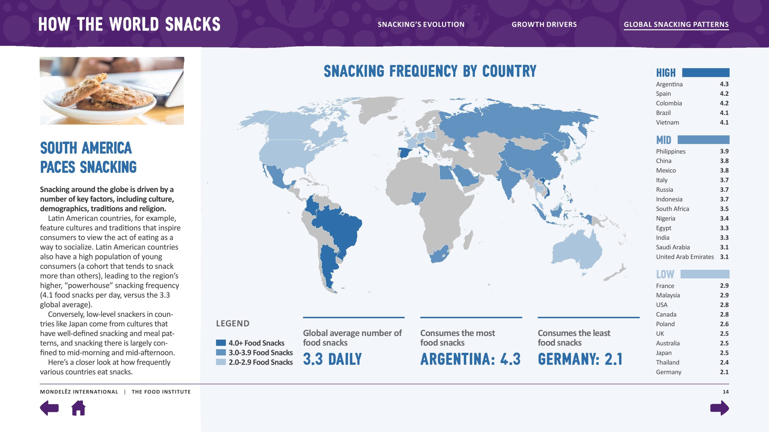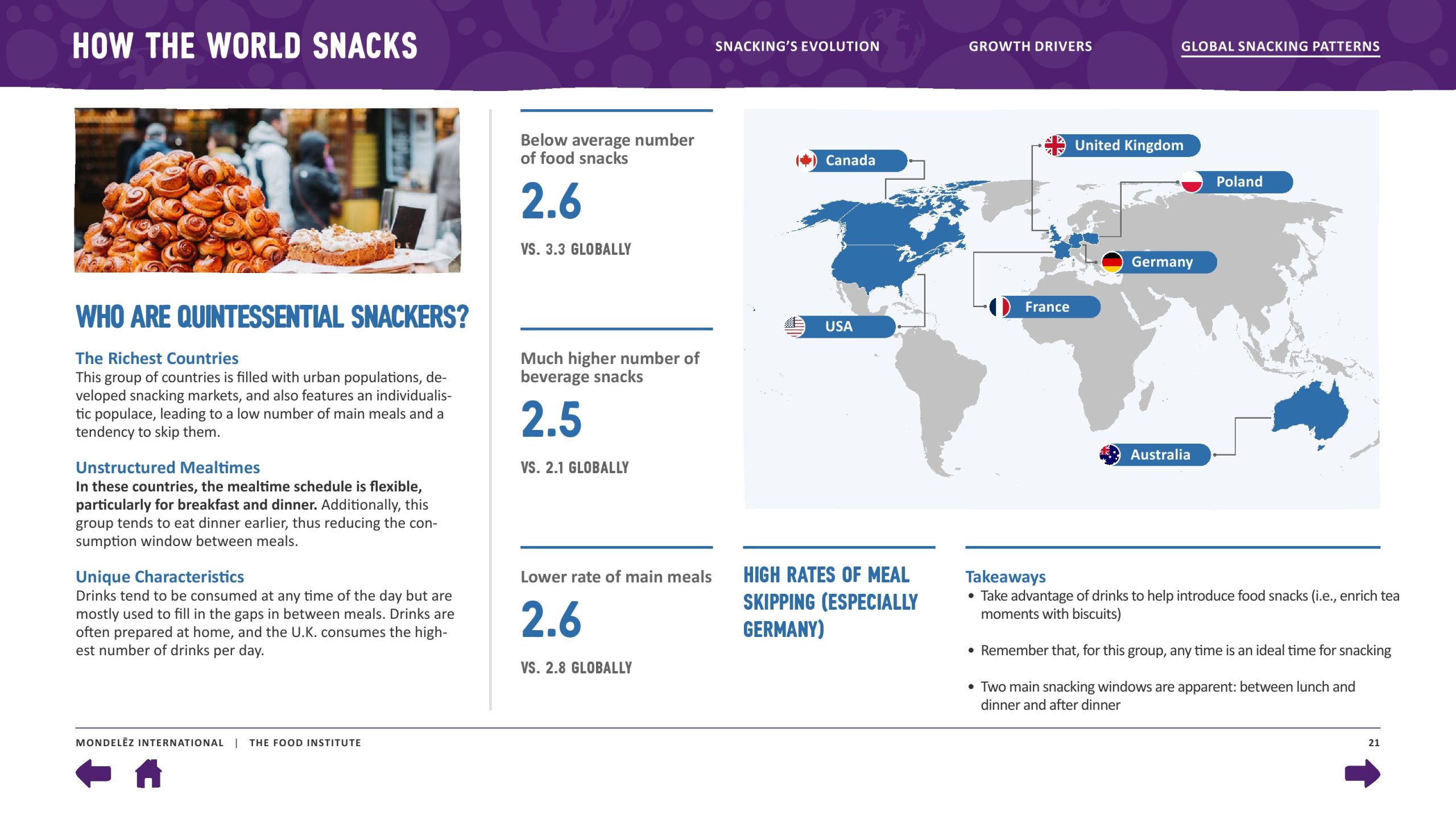 但还有更多因素在起作用。简单地说,现在世界上很多人都把零食当成了一种日常用品,通常是维持身体健康或享受定期犒赏的一种方式。