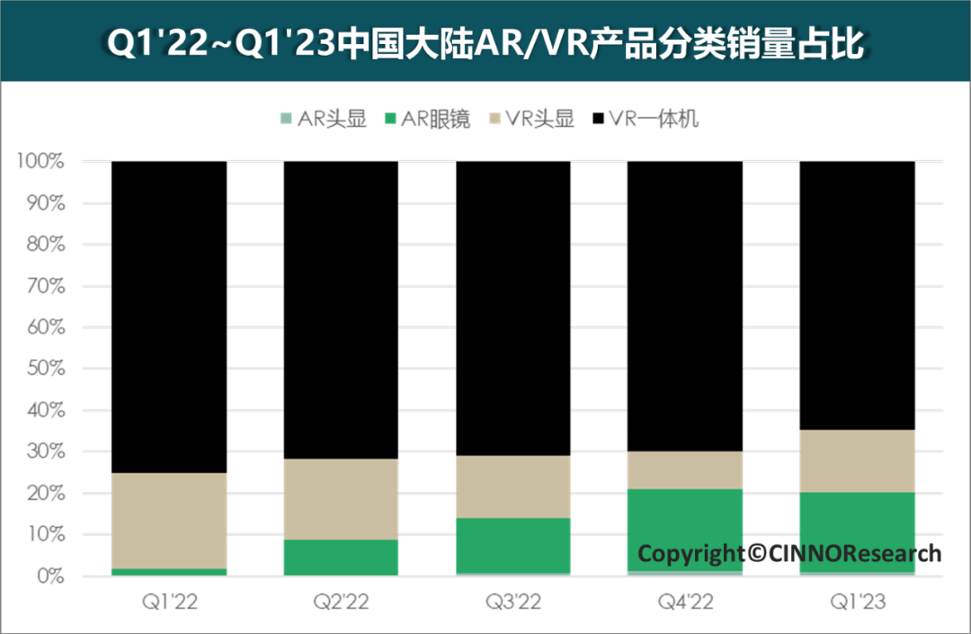 01、根据CINNO Research统计数据显示,2023年一季度,国内ARVR整机销量合计22万台,尽管较2022年四季度环比下滑11%,但仍远超过其他三季度表现,同比增长高达62%。考虑到一季度属于传统销售淡季,这一表现已经好于大部分其他消费电子品类。ARVR市场正呈现逐年滚动增长的态势。
