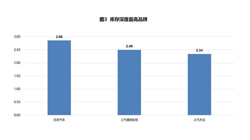 5月份库存深度超过2个月的品牌有8个,其中库存深度最高的品牌为北京汽车、上汽通用别克、上汽大众。