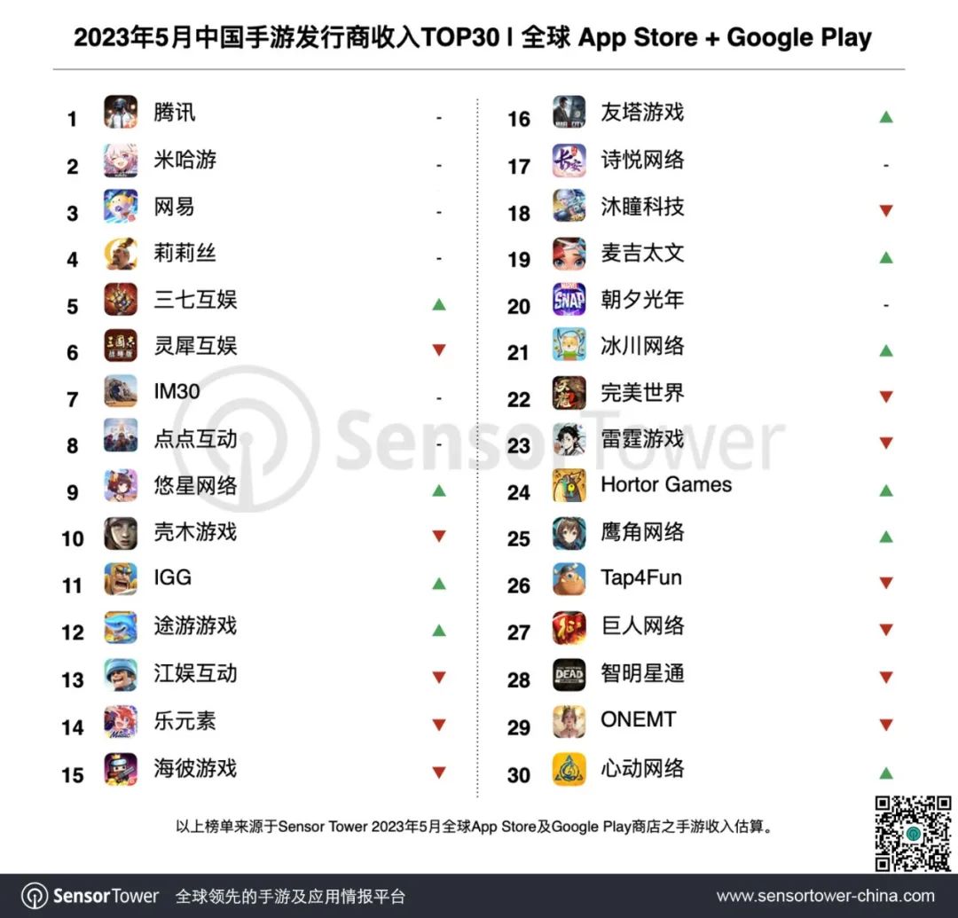 在《明日方舟》限时活动「2023大感谢祭・春」和《碧蓝航线》多款SSR新角色的带动下,悠星网络5月收入环比提升44%,重回榜单第9名。