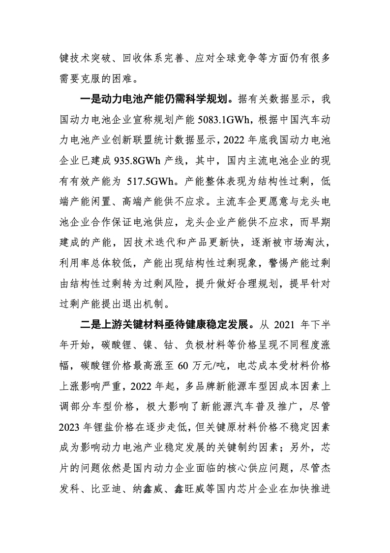在技术路线上,全球商业化 应用的技术路线仍以三元电池和磷酸铁锂电池两条路线为 主,在下一代电池路线上,韩日重点发展全固态电池,我国 除全固态电池之外,还布局了半固态电池、钠离子电池等不 同的技术路线,与此相匹配的上游关键材料也在快速发展, 动力电池进入到全球竞争且快速增长的发展阶段。