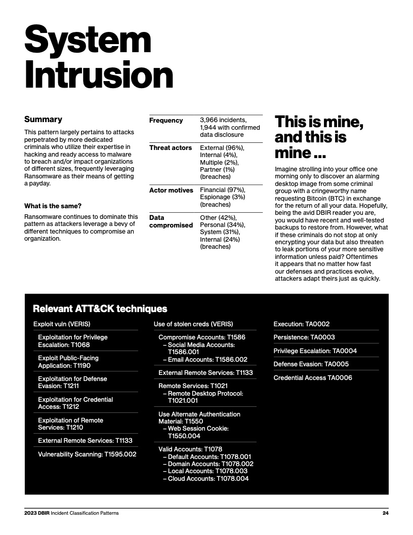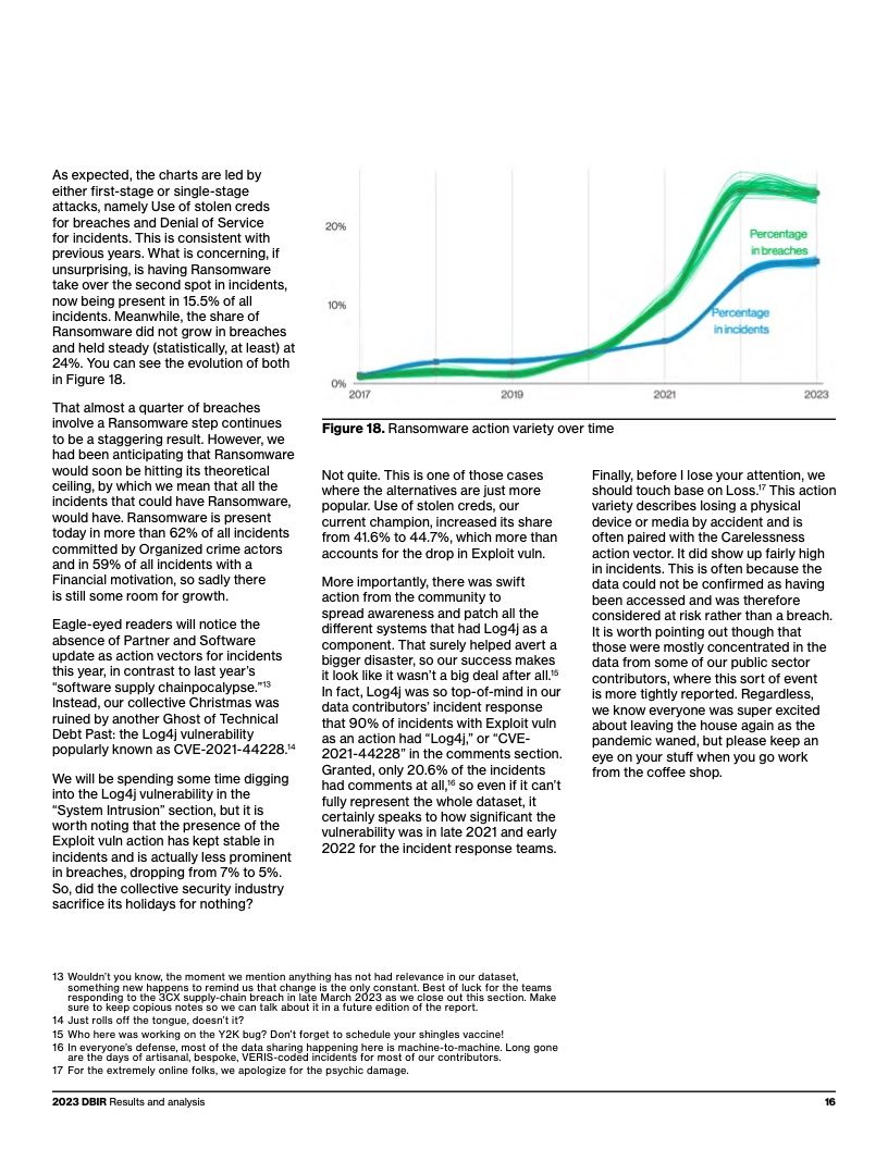 2023年度数据泄露调查报告,Verizon分析了16,312起安全事件和5,199起数据泄露事件。