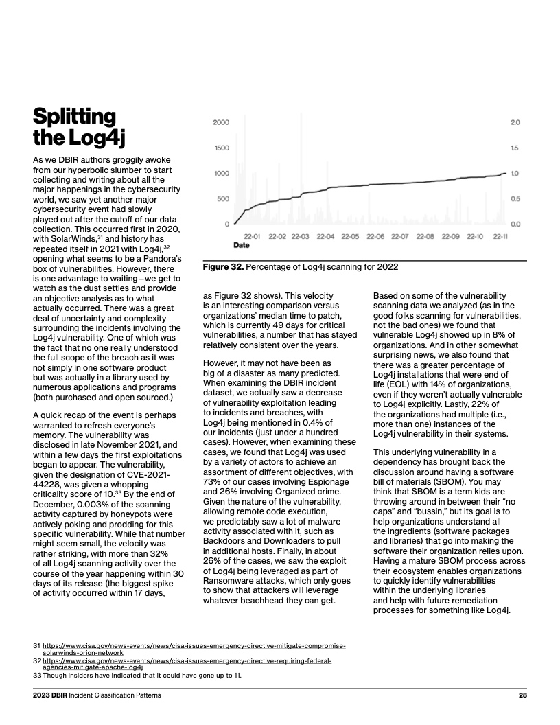 一年中超过32%的Log4j扫描活动发生在其发布后的30天内(最大的活动高峰发生在17天内)。