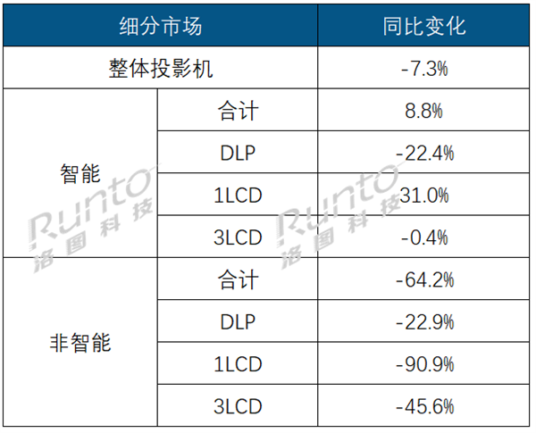 其中,中国市场的非智能投影出货量同比下滑64.2%,其撤退速度极大的拉低了整体市场大盘。
